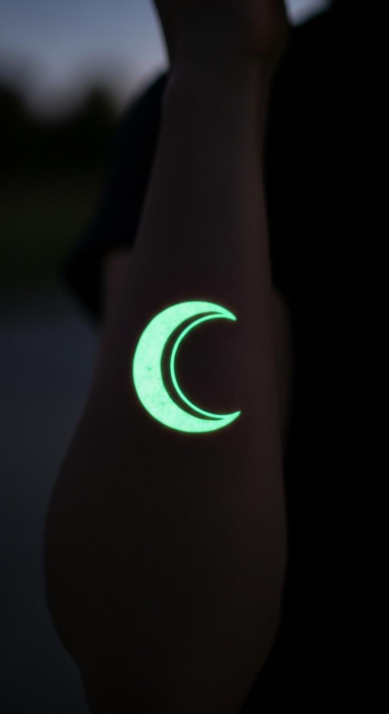 Make your crescent moon glow for fun nights. Research inks online. Price $160. Glow design adds surprise. Test with stickers. Special ink needed. Hour sessions. Careful exposure.