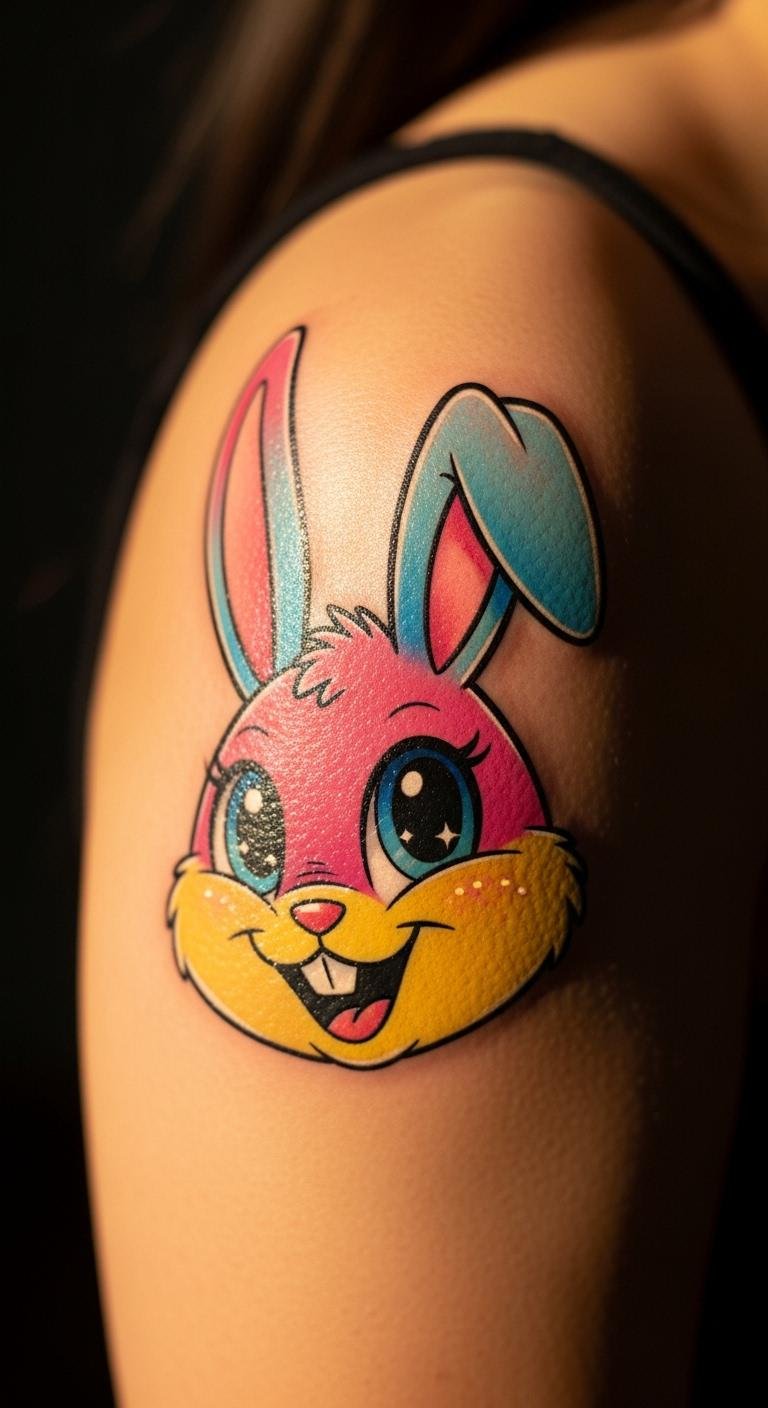 A cartoon bunny tattoo brings back childhood fun. Picture a bouncy rabbit with exaggerated features. It’s perfect for a first tattoo. Start small on your wrist. Find an affordable artist online who specializes in cartoons. They often have packages under $100. Draw your own version at home with paper and markers. Use free apps to tweak designs before committing. This keeps costs low. Cartoon bunny tattoos heal fast on visible spots. Add colors with washable pens for a trial run. Keep it light and enjoyable.
