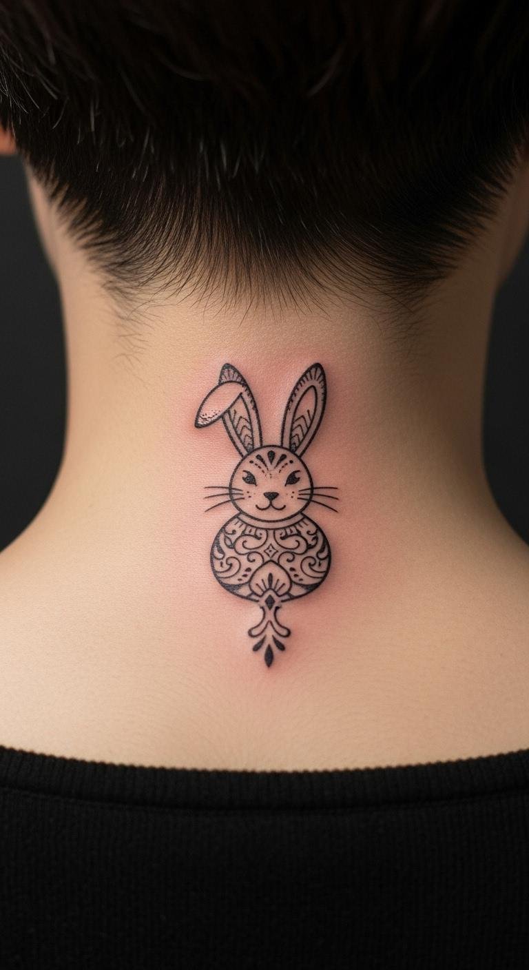 Cultural bunny symbol tattoos honor traditions. See a rabbit for happiness and fertility. It’s meaningful and respectful. Spot it on your neck subtly. Artists with cultural focus charge $100. Research symbols with books at home. Free cultural sites provide info. Keep it authentic. Cultural bunny enriches stories. Use symbols in journals first. Embrace the meaning.