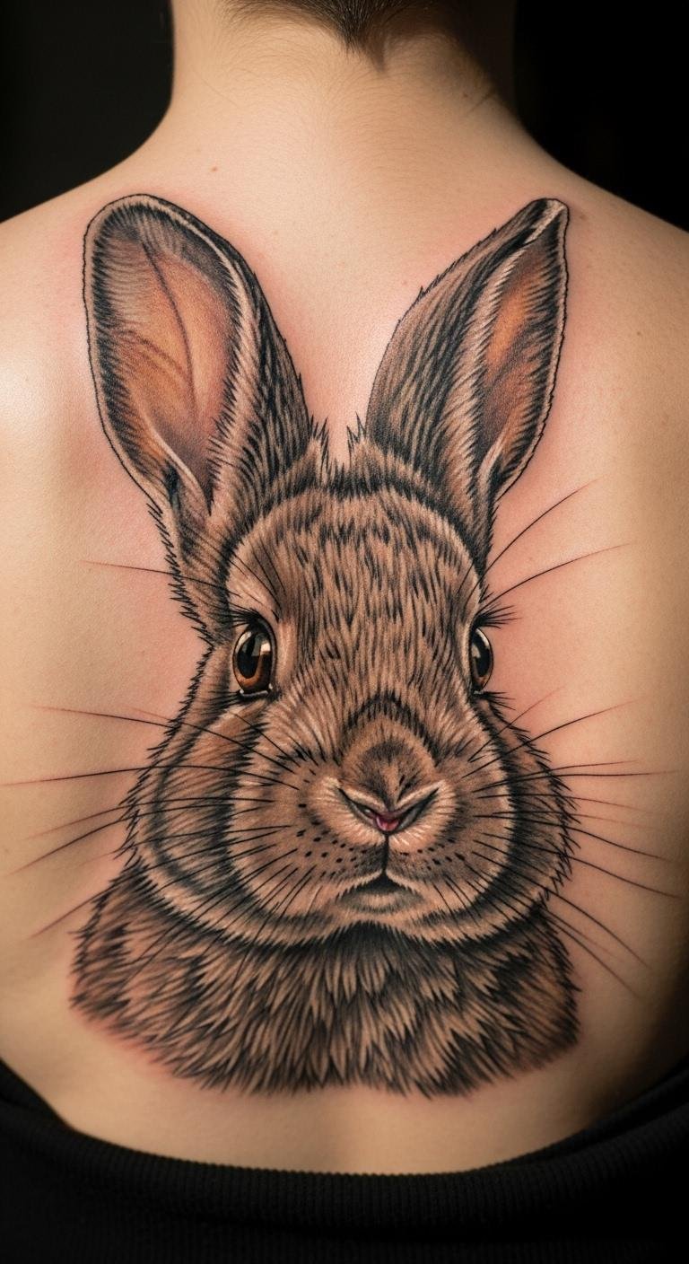 A realistic bunny portrait captures lifelike details. See a detailed face with soft fur. It’s for those who want depth. Choose your forearm for visibility. Find artists with portfolio discounts, around $200 for medium sizes. Practice shading with charcoal sketches at home. Online videos guide you through basics without cost. This helps refine your idea. Realistic bunny tattoos tell a story. Use makeup pencils for a mock-up on your skin. Make it a personal project.
