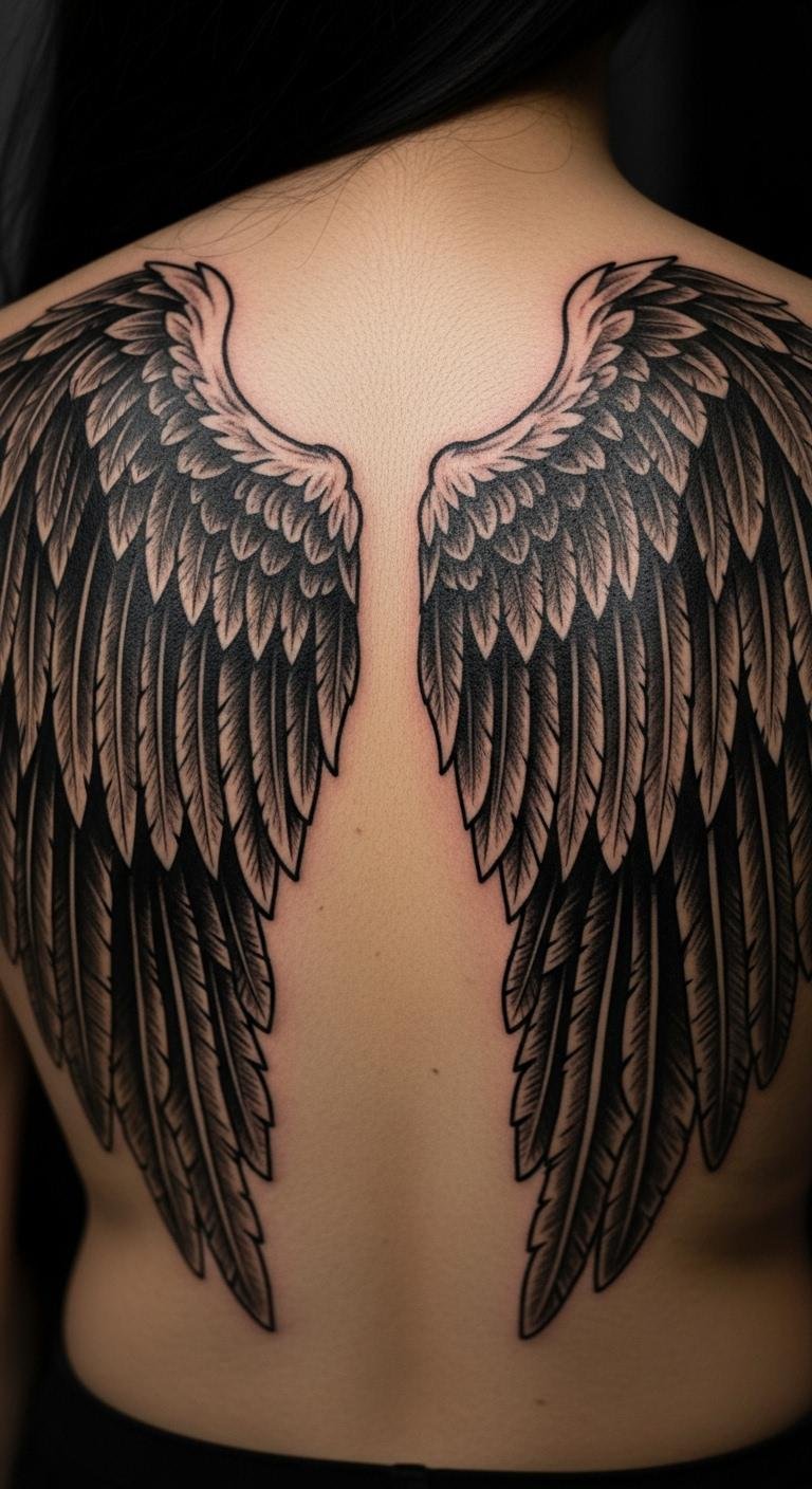 Wings symbolize safety. Black ink makes them strong. Sketch feathers on paper quickly. Use bird images for reference. It’s easy and free. Add details for depth. Place on your back for spread. Draw with a marker at home. This tests the flow. Focus on symmetry. You’ll feel guarded. Try different sizes first.