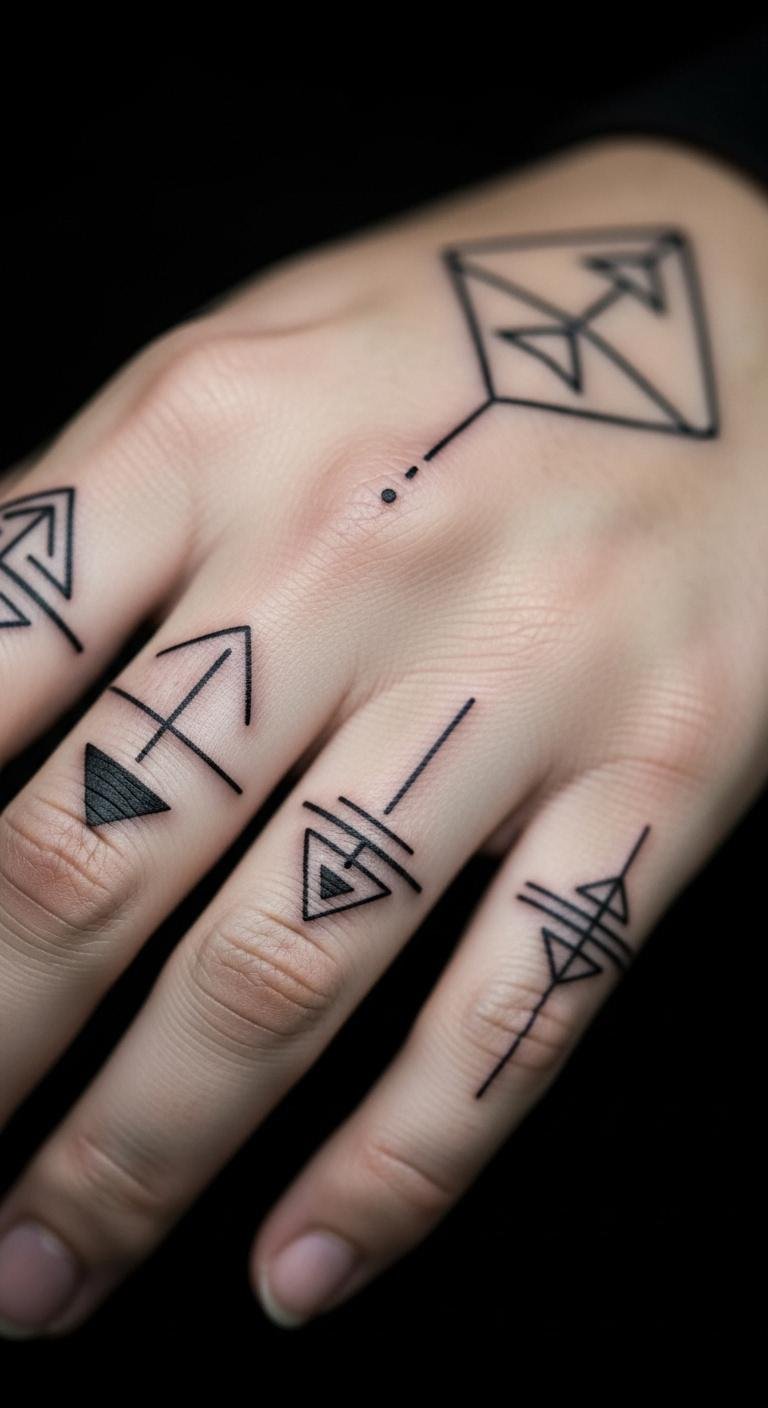 Geometry offers clean precision. Blackwork keeps it stark. Draw shapes on your skin with a washable pen. Use a ruler for straight lines. It’s a cheap test run. Add triangles for strength. Place on your fingers for subtlety. Experiment with patterns at home. This saves money upfront. Focus on symmetry. You’ll achieve a modern look. Share sketches with artists online. It helps refine ideas. This tattoo feels empowering. Keep it simple to start.