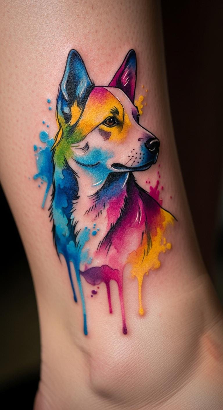 Watercolor Dog Tattoo