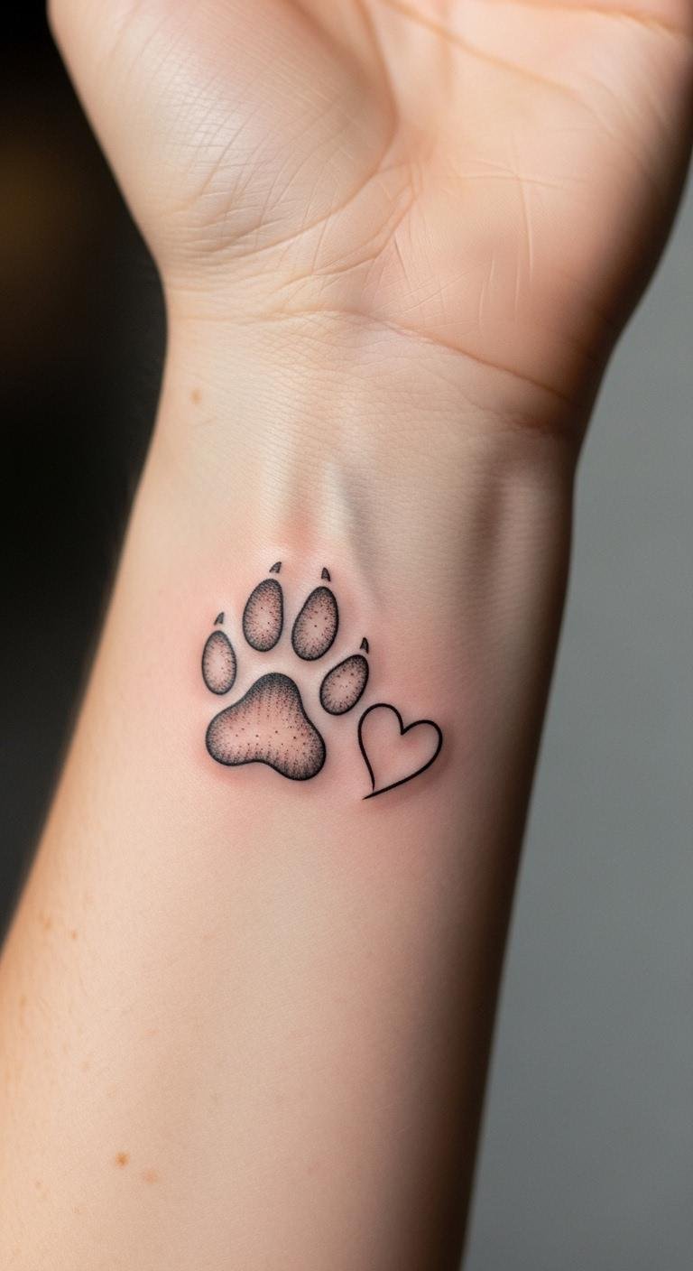 Symbolic Heart and Paw Tattoo