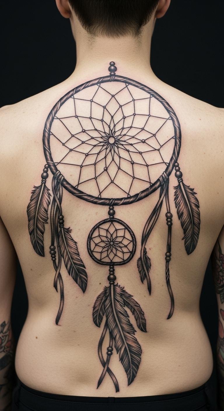 A full back web covers you like a cape. It captures more than just dreams. Feathers trail down for balance. Go for a budget artist who specializes in larger pieces. Break sessions into affordable parts. Draw a grid on paper to plan. This cuts down on revisions. The design symbolizes total harmony. Easy tip: Use free apps to sketch ideas. Add beads for personal flair. This placement feels like a constant guard.