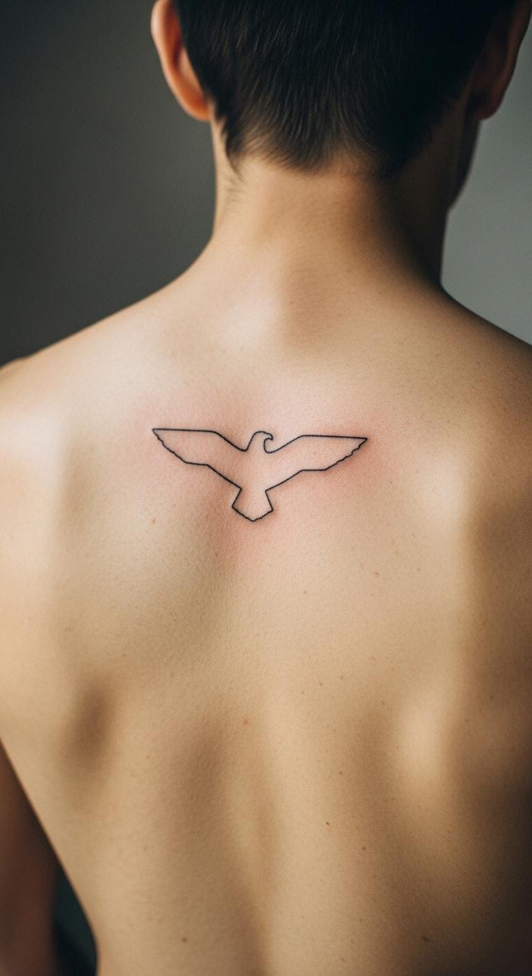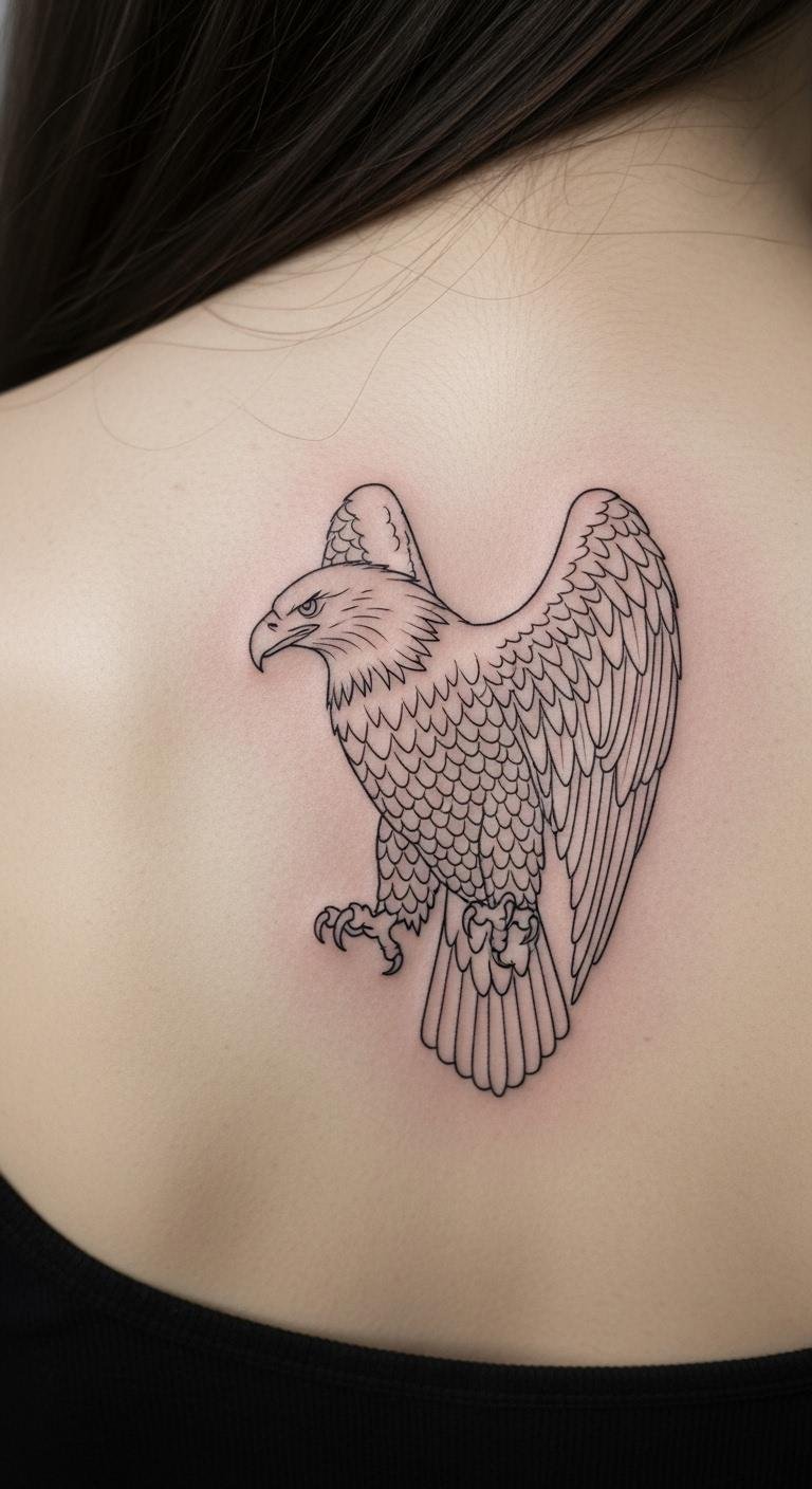 Keep it minimalist with just an eagle outline on your back. It says a lot with little. This design is straightforward. Sketch the outline on paper with a single pen. Focus on the core shape. Avoid extras. This cuts costs significantly. Show to minimalists in your group. The tattoo is versatile. Practice quick sketches. You’ll keep it simple.