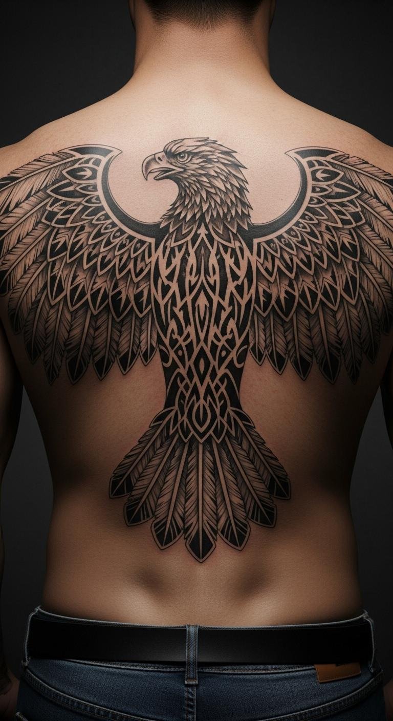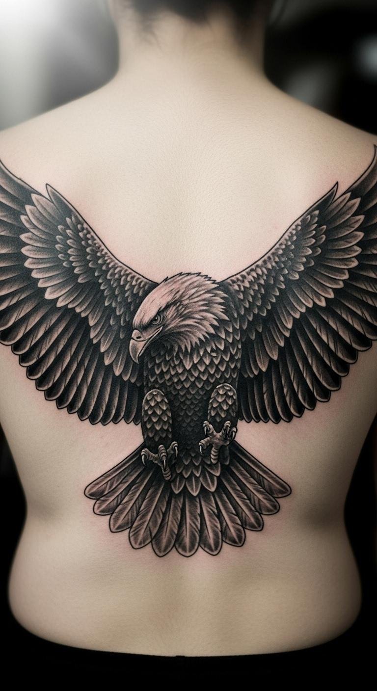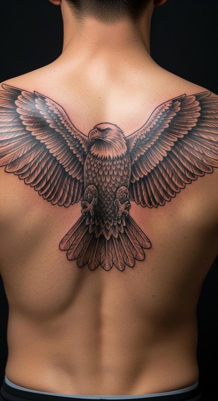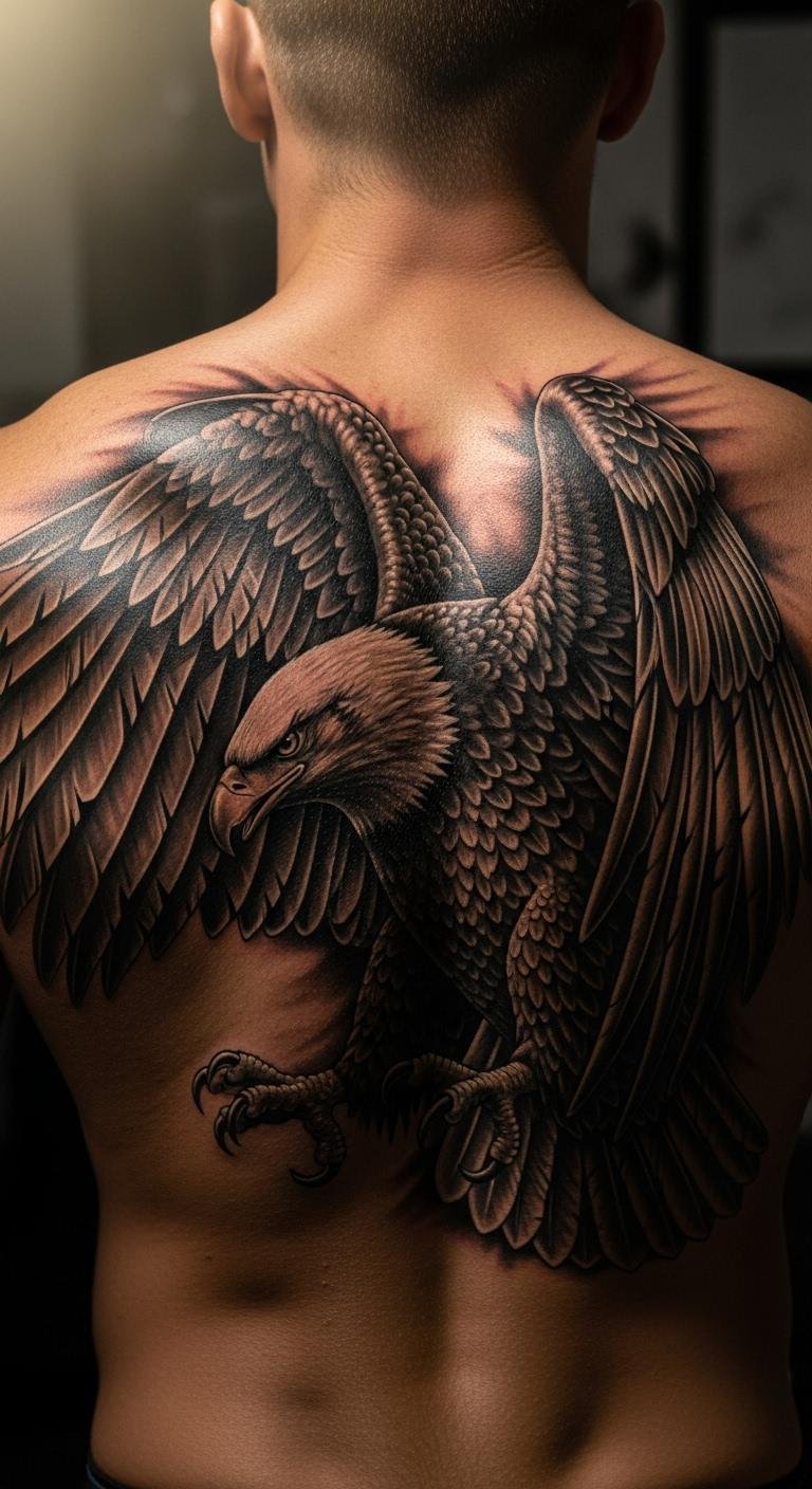 Make your eagle the main anchor on your back. It sets up for future additions. This design dominates the area. Sketch a big eagle and leave space around it. Use large paper from recycling. Plan for arms later. This saves on phased sessions. Talk with artists casually. The tattoo grows with you. Practice on big sheets. You’ll lay a strong base.
