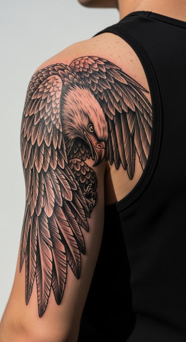 Choose a black and grey eagle for a timeless back piece. It focuses on shadows and depth. This style keeps things understated yet bold. Use charcoal sticks from home to practice shading on paper. Sketch the eagle and layer grays yourself. Add faint details for interest. This method helps avoid color costs. Get feedback from casual talks. The tattoo ages well. Try it with supplies you have. You’ll master the look.