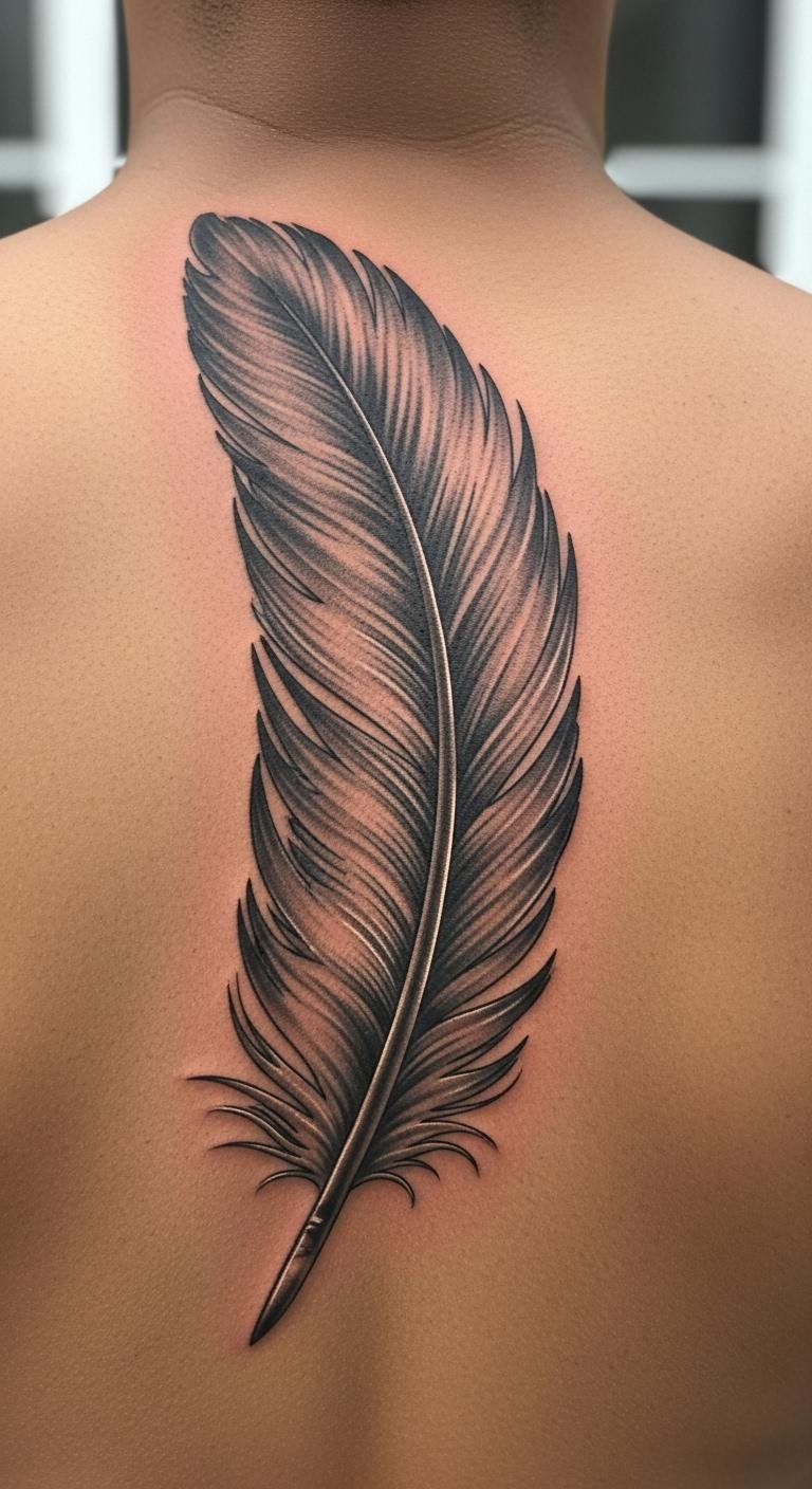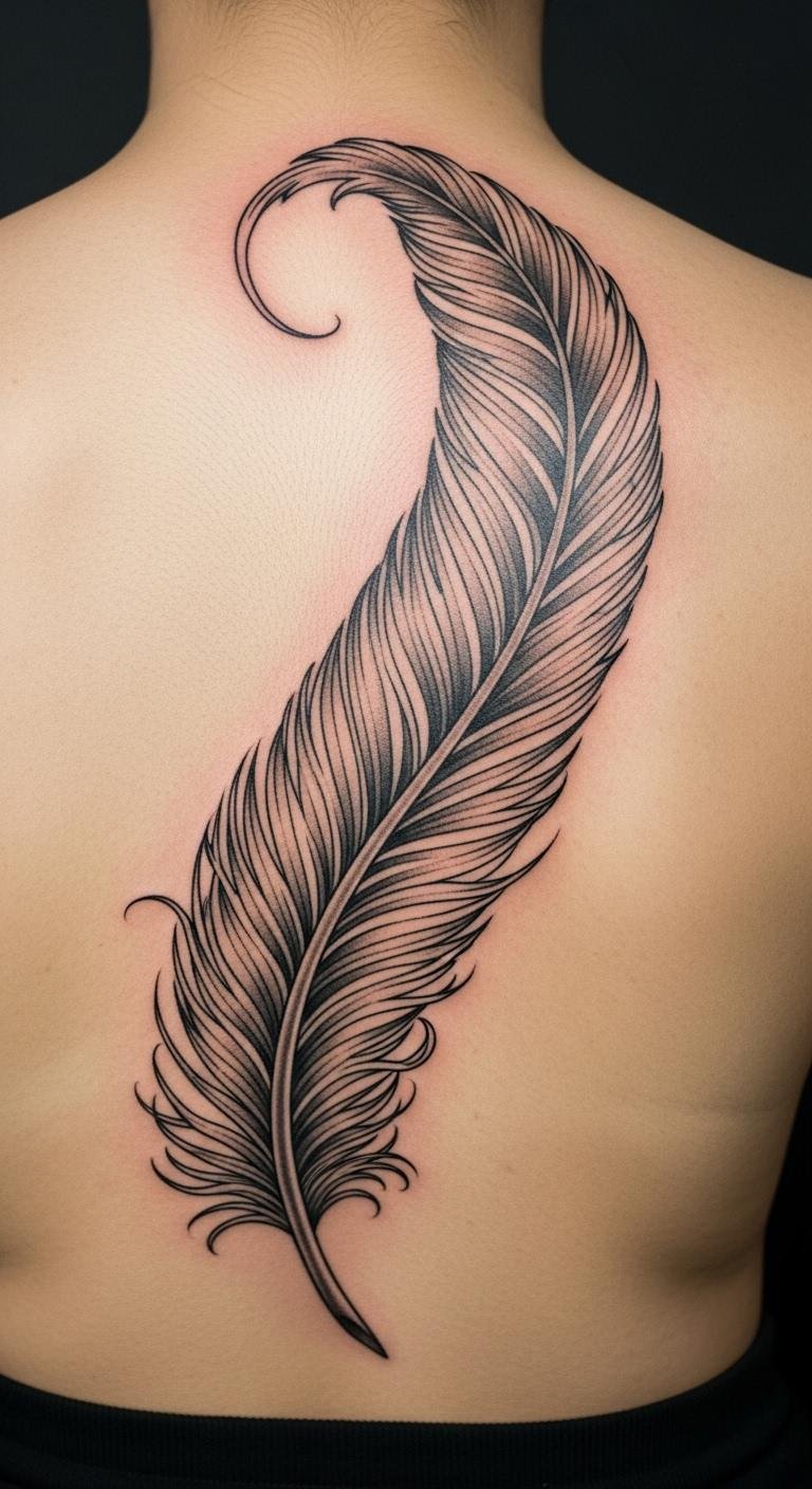 Back feathers embody graceful freedom across your skin. Draw the long shape on paper using a pencil—simple and cheap. Emphasize the flow for elegance. Place it here for a grand, personal canvas. This idea reflects natural poise in motion. Bold this: back feather covers space beautifully. Add curves with free software. Keep it streamlined for affordable ink. Moisturize with lotion you already have. Feathers on the back soar with every move, boosting spirit. Sketch options on paper first. This way, you craft your story without overspending.
