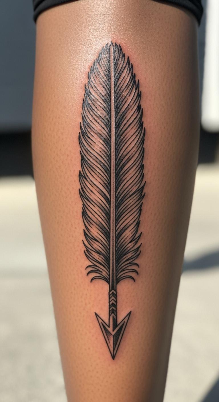 Arrows with feathers point to direction and liberty. Draw the arrow and feather on paper with a ruler—costs nothing extra. Focus on the fletching for accuracy. Put it on your calf for strength on show. This style guides your path to freedom boldly. Bold this: arrow with feather directs energy clearly. Add a twist with markers at home. Keep shapes basic for wallet-friendly sessions. Apply sunscreen daily to preserve it. Feathers here fly straight, motivating steps forward. Practice on paper before going pro. This approach keeps creativity in reach.