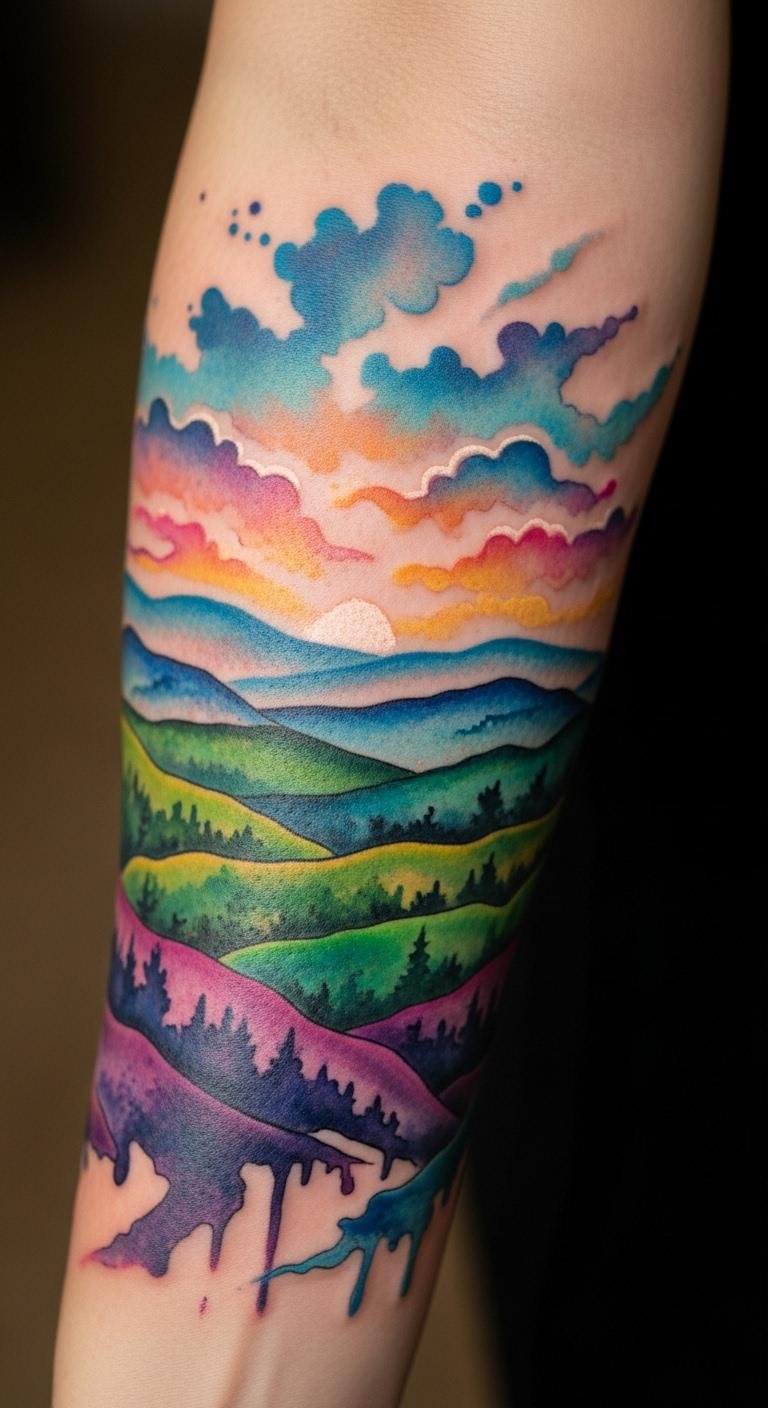 A watercolor landscape inspires. Draw scenes on paper. Simple DIY. Budget at $95. Blended hues. Arm curve. Personal touches. Daily lift. Time appointments. Use drawings.