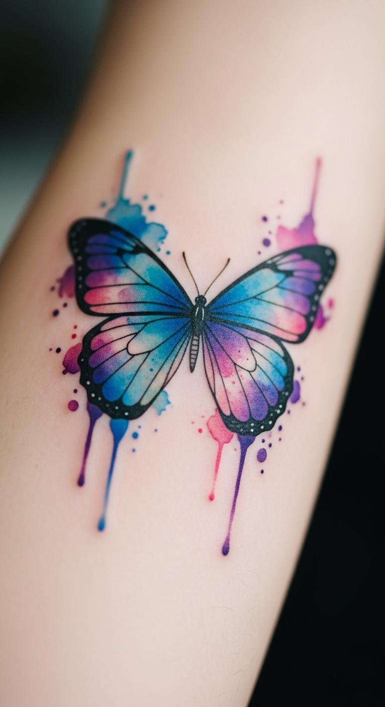 Go for a watercolor butterfly on your forearm for a playful feel. Sketch a butterfly outline at home with colored pencils to test colors. This free activity lets you experiment before ink. Find budget artists who use water-based methods—tattoos might cost $80 to $200. Stick to two colors to cut costs. Position it on the outer arm to show off or cover up as needed. Add a personal element, like your favorite hue, by drawing it first. Pair with simple tops for an instant lift. This design suits short sessions, so schedule one in the evening. Use home sketches to guide your choice and save money. Keep it fresh by selecting areas with less movement.