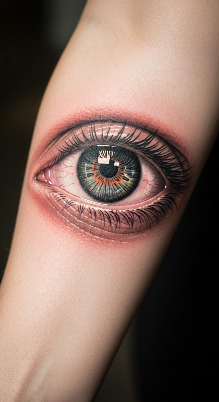A realistic eye watches over. Sketch an eye yourself. Free. Artists for $100. Detailed yet simple. Placement idea. Customize art. Wear effect. Session plan. Input from sketches.