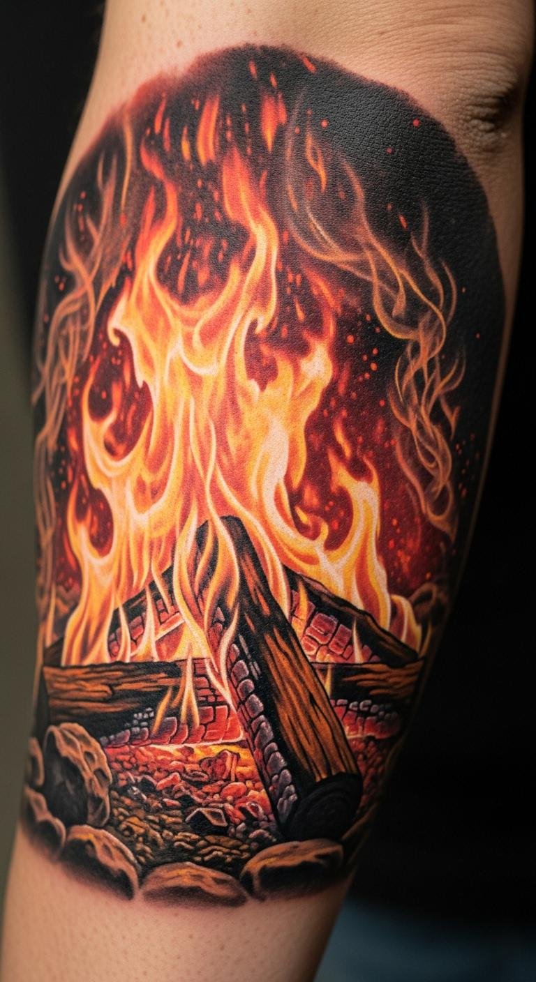 A campfire tattoo warms your spirit. Sketch flames on paper. Free clipart helps with shapes. Use basic colors for affordability. Tattoo it on your forearm. Campfire art evokes nights outdoors. Try drawing with crayons first. It keeps the adventure alive daily.