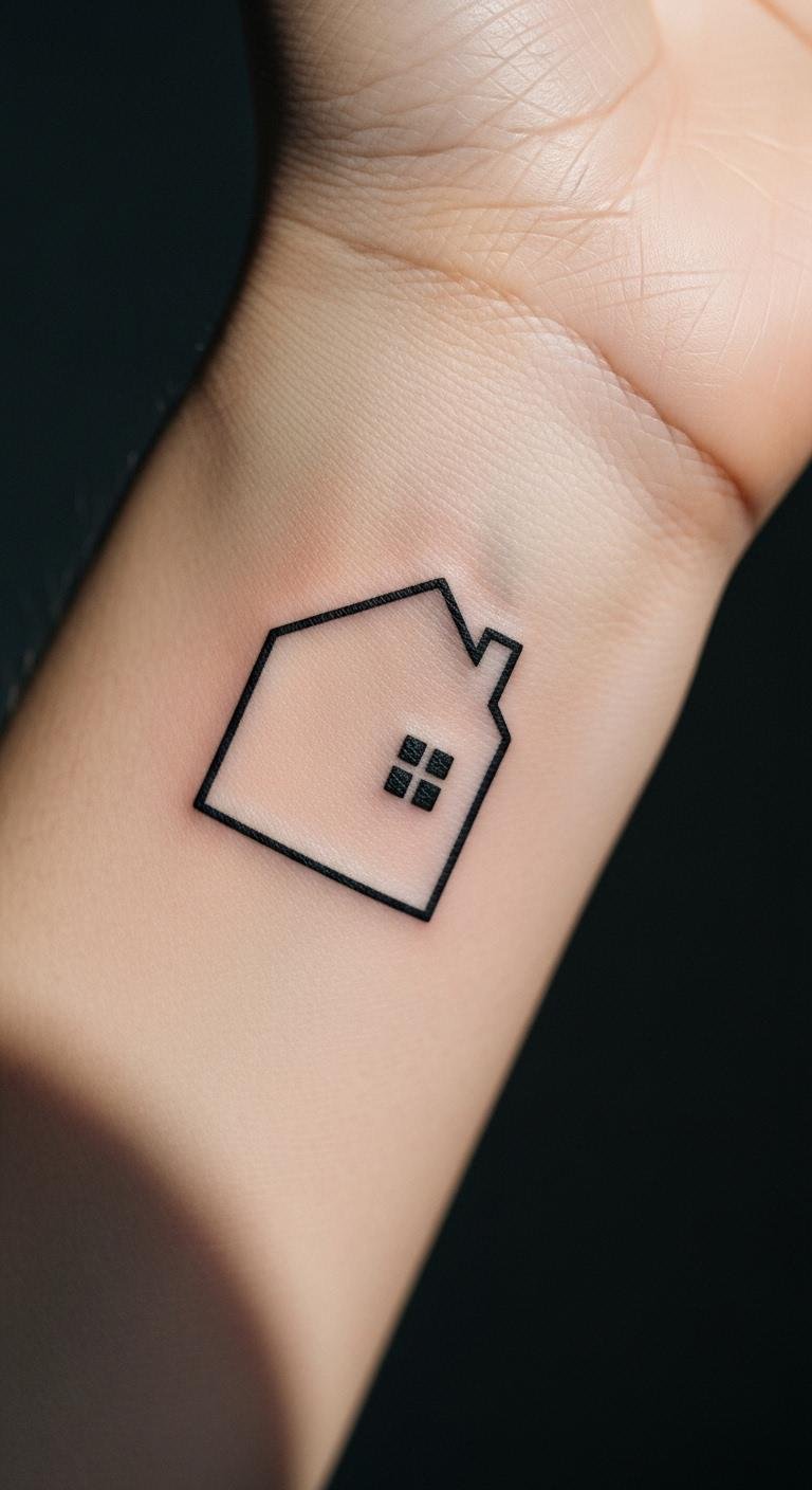 Think of a minimalist house tattoo as your go-to for something understated yet powerful. It uses basic lines to sketch a home that says a lot with little. Start with a small outline on your arm. Pick a spot like the wrist for easy visibility. For a budget-friendly approach, sketch ideas on paper first using a pen. This helps you tweak the design before hitting the studio. Add personal touches, like a tiny roof detail, to make it yours. Real DIY example: Use free online tattoo apps to overlay designs on your photo and see how it fits. Keep ink costs low by choosing black outlines over colors. This style ages well and stays meaningful without fading fast. Go for a local artist who specializes in line work—they often charge less for simple sessions. You’ll end up with a tattoo that feels personal and practical every day.