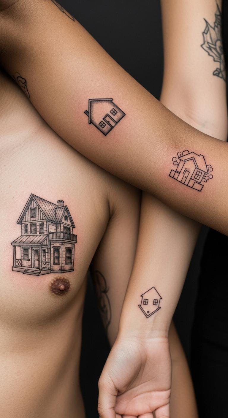 Stand out with unique house tattoo designs that mix ideas. It’s all about originality. Try your shoulder. Combine elements in sketches. Real DIY example: Mix styles from magazines at home. Keep it inventive but simple. This ensures affordability. Choose a creative artist. Your tattoo will be one-of-a-kind and inspiring.