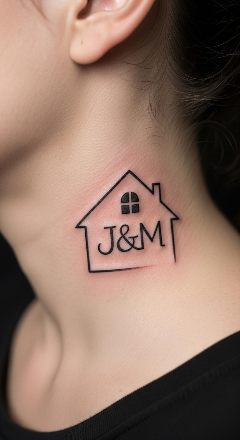 Incorporate initials into your house tattoo for family flair. It’s a neat personalization. Put it on your neck. Add letters to your sketch. Real DIY example: Write initials in various fonts at home. Go minimal to save money. This makes it special. Choose a text-savvy artist. Your tattoo will feel custom and close.