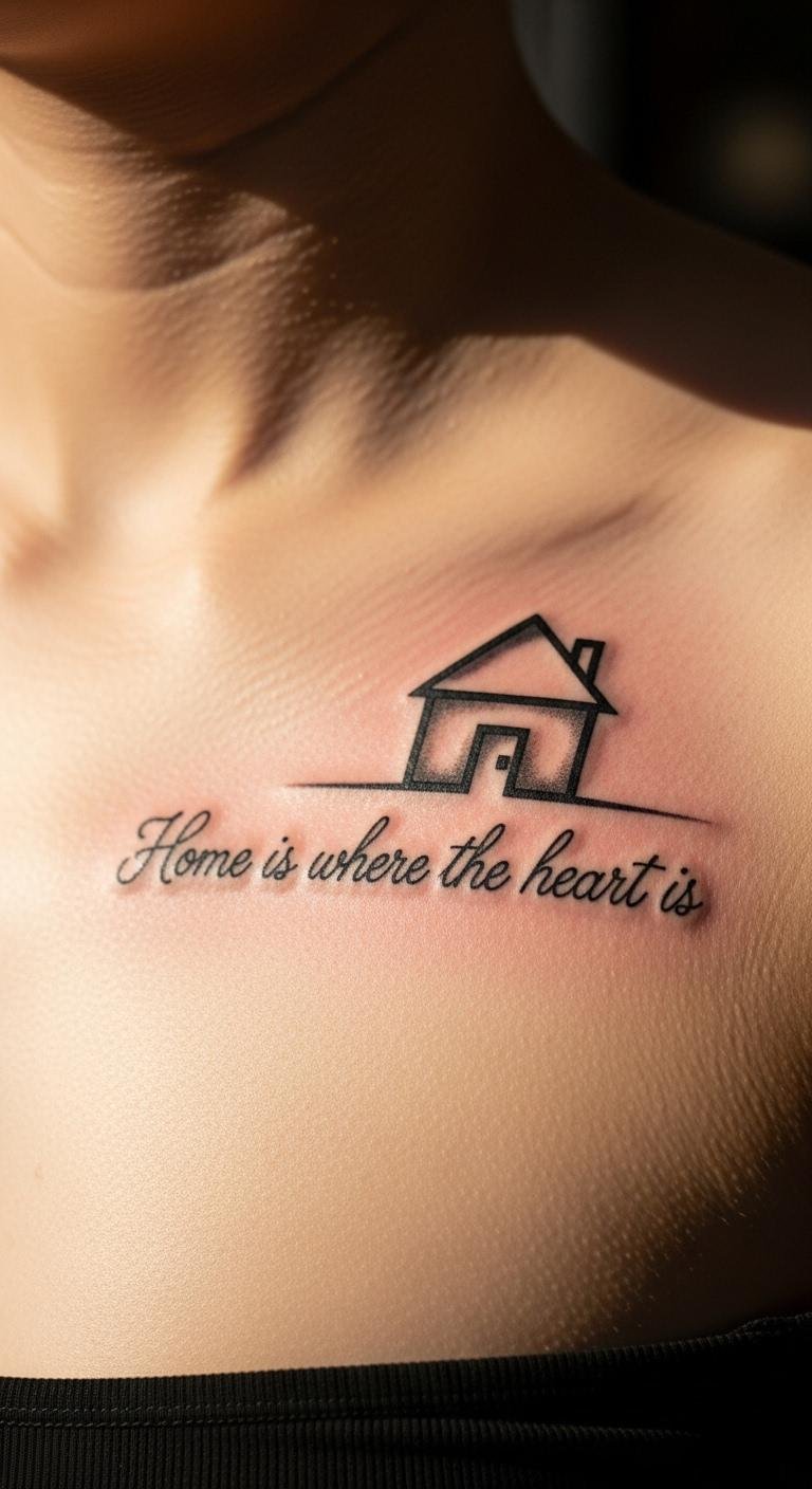 A house tattoo with your family motto adds words that matter. It’s a way to honor roots in one spot. Position it on your chest for closeness. Write out phrases on paper to fit the design. Real DIY example: Practice lettering with free fonts on your computer. Keep text minimal to stay budget-friendly. This personal touch makes tattoos meaningful. Find an artist who does text quickly. Your design will remind you of family ties without extra expense.