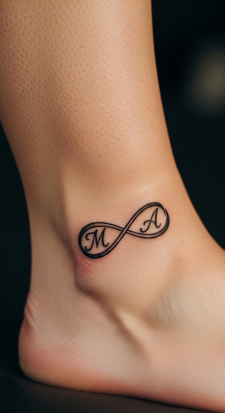 An ankle infinity with flowers mixes beauty and permanence. Think of it as blooming love that lasts. Budget $100 and select simple blooms to keep costs down. Sketch ideas with pencils at home for practice. Incorporate local flowers for a personal story. Bold key: flowering eternal love. This design suits nature lovers perfectly. Visit a studio for a straightforward session. It’s a fresh take that’s easy to maintain.