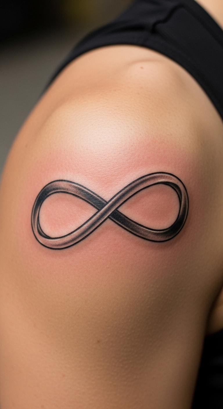 Double infinity captures two layers of forever, like shared dreams. Position it on your shoulder for balance. Stay under $110 by using symmetric designs. Test with string loops at home for layout ideas. Add a twist for uniqueness on a dime. Bold key: dual eternal love. This works for multiple relationships. Schedule with a detail-oriented artist. Simple yet profound for everyday wear.