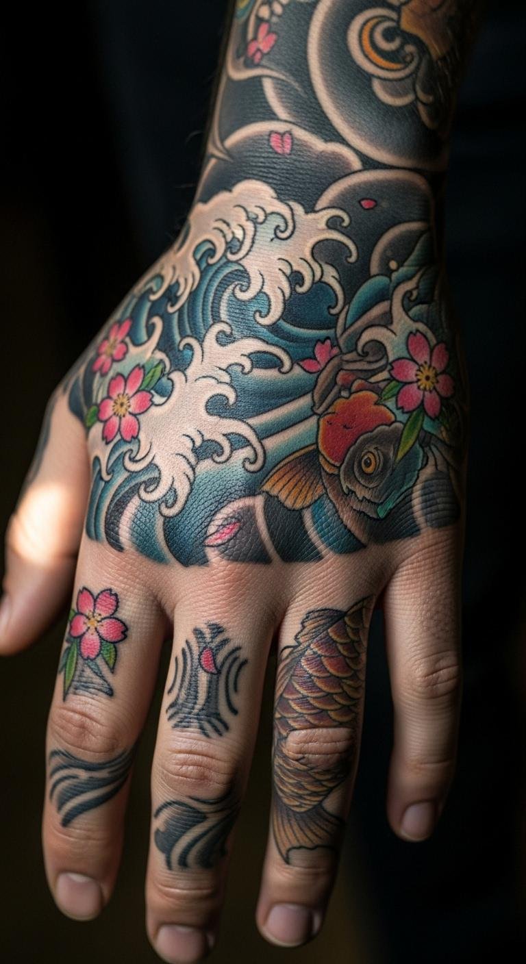 Hand tattoos offer daily visibility. Go with waves for a water theme. They symbolize life’s flow. Choose a small design to start. Look for hygienic studios nearby. Spend wisely: Around $100 for basics. Trace waves on your hand with a marker first. This DIY test shows how it looks. Position it between fingers for subtlety. Heal by keeping hands dry. Make it personal with added dots. It’s a constant reminder of calm.
