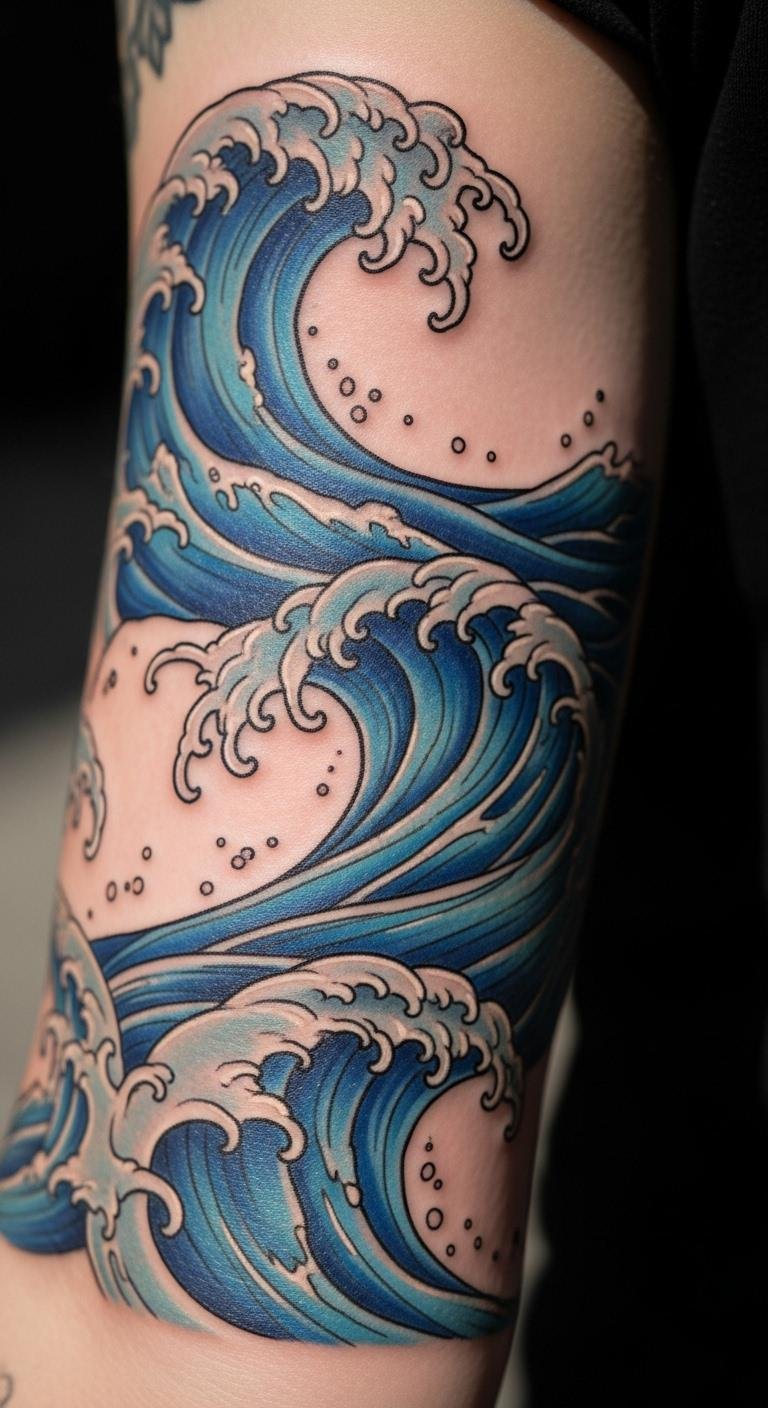 Waves show change and strength. Put them on your arm for flow. Use blue shades for realism. Find deals on group sessions. Cost: About $180. Practice drawing waves on paper. Adjust for your style. Add fish for extra meaning. Keep it fresh with moisturizer. It’s like carrying the ocean.