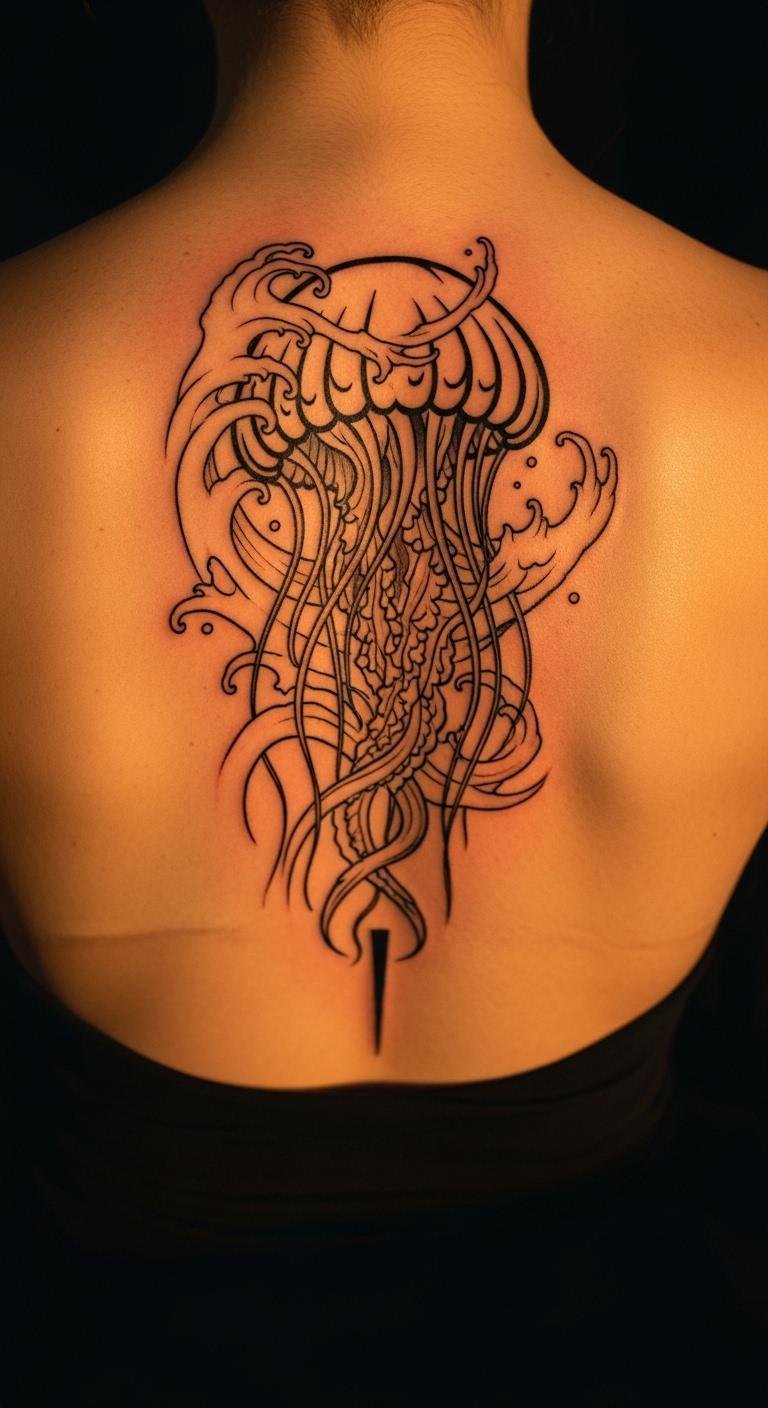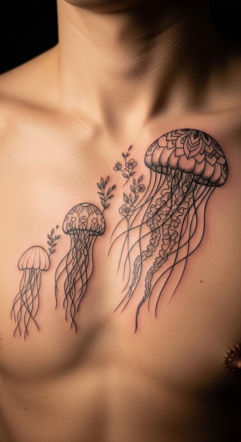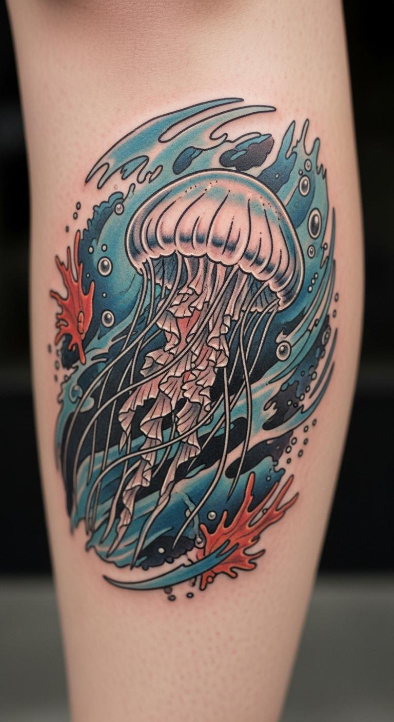 Appeal to nature lovers with ocean-themed jellyfish tattoos. Add sea details for connection.