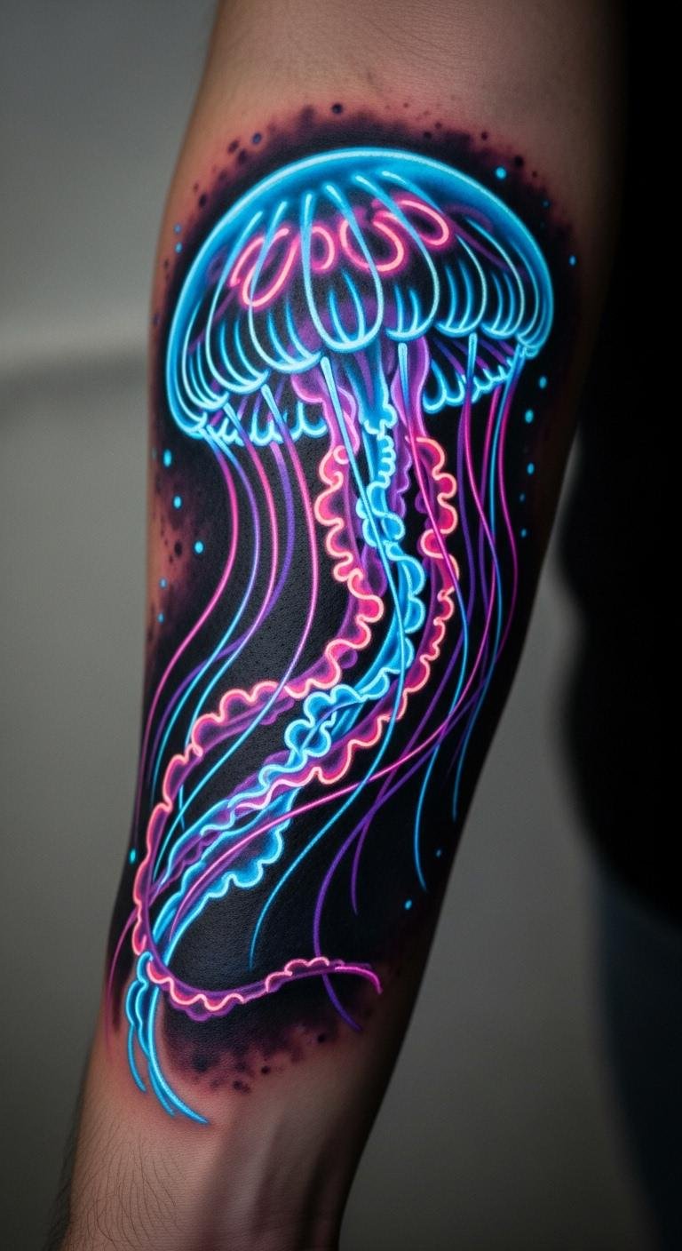 Bold Neon Jellyfish Tattoo Idea