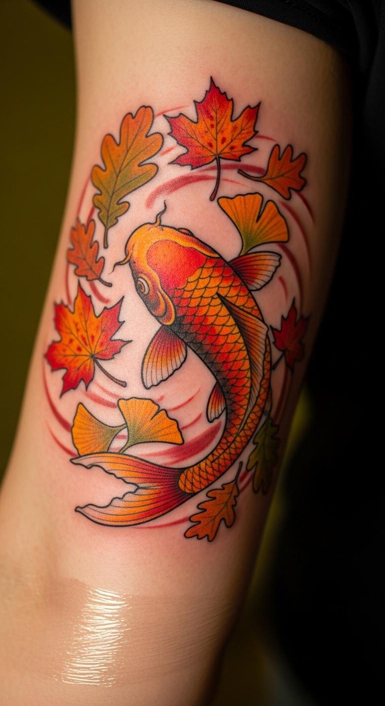Seasonal koi adapts to times of strength. Leaves or flowers add context. A timely tribute. Your seasonal surge. Draw with seasonal colors at home. Free seasonal templates help. Tattoo on your arm for change. Cost $70. Watch for time-based deals. Mix in leaves. This idea keeps it fresh.