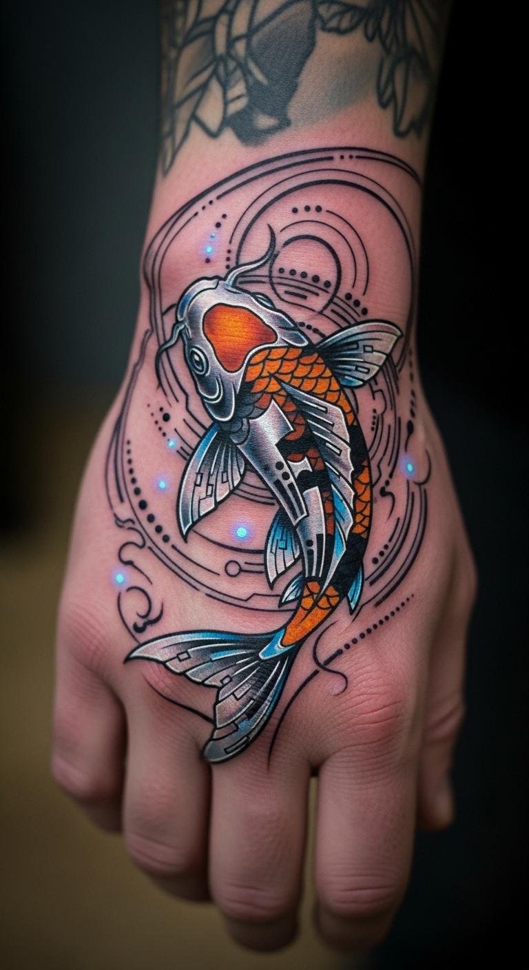 Modern koi reimagines strength today. Fresh twists on the fish. A current symbol. Your contemporary courage. Experiment with new ideas at home. Apps modernize designs. Tattoo on your hand for now. Budget $50. Look for fresh deals. Add tech elements. This interpretation fits today.