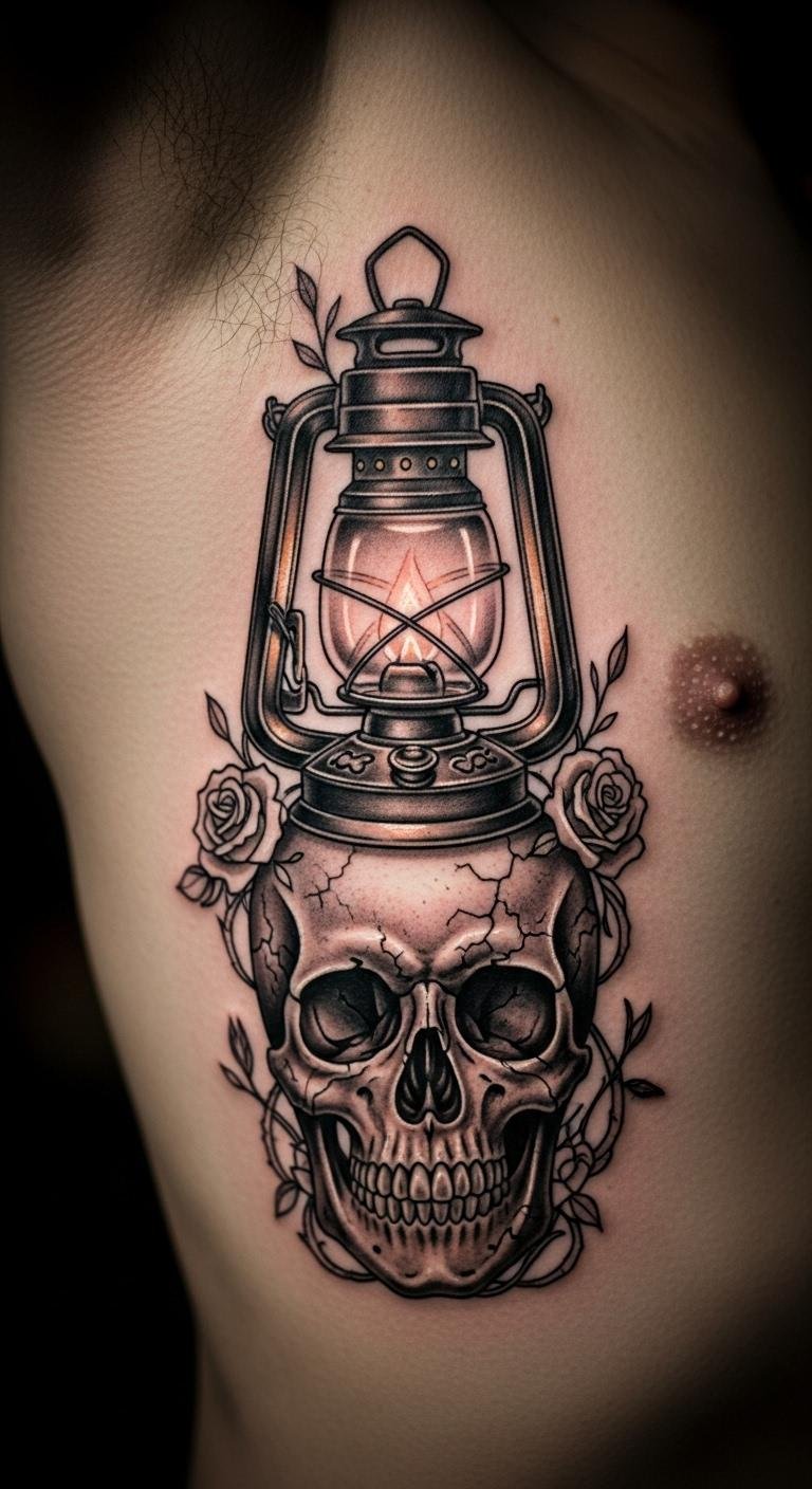 Pair lanterns with skulls for an edgy vibe. It mixes light and mystery. Prices: $90. Draw it with a skull template. This design means life’s contrasts. Place on your rib for a hidden spot. Go small to save money. Sketch at home first.