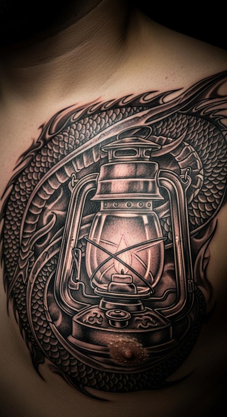 Combine lanterns with dragons for power and light. It’s mythical and strong. Prices: $100. Sketch the fusion at home. This design means protection. Put it on your chest for impact. Go moderate in size.