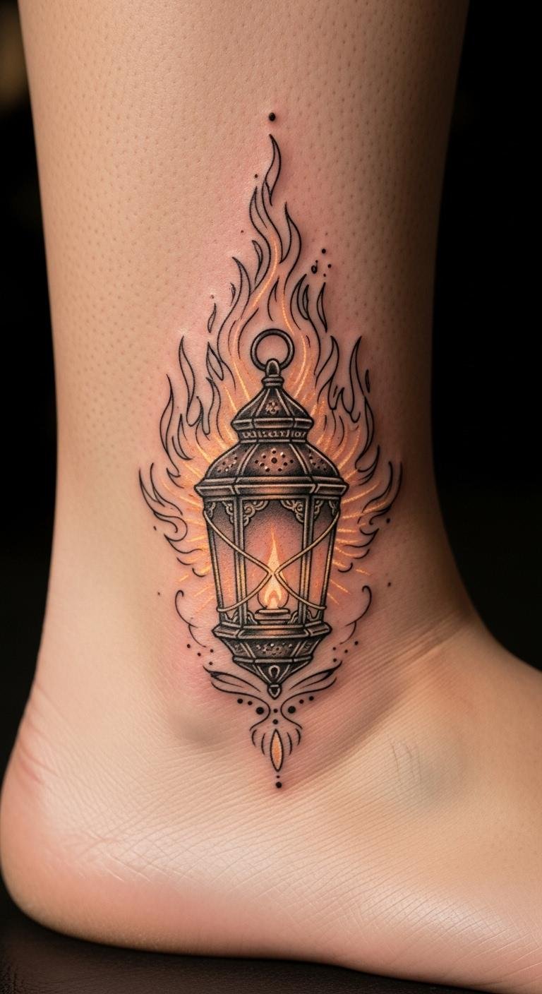 Go realistic with black and grey shades for depth. A lantern with shadows looks lifelike. Budget $80–$130. Sketch shades with a graphite pencil. This style adds realism to symbols. Place it on your calf for impact. Choose smaller sizes to cut costs. Use grey markers to test at home.