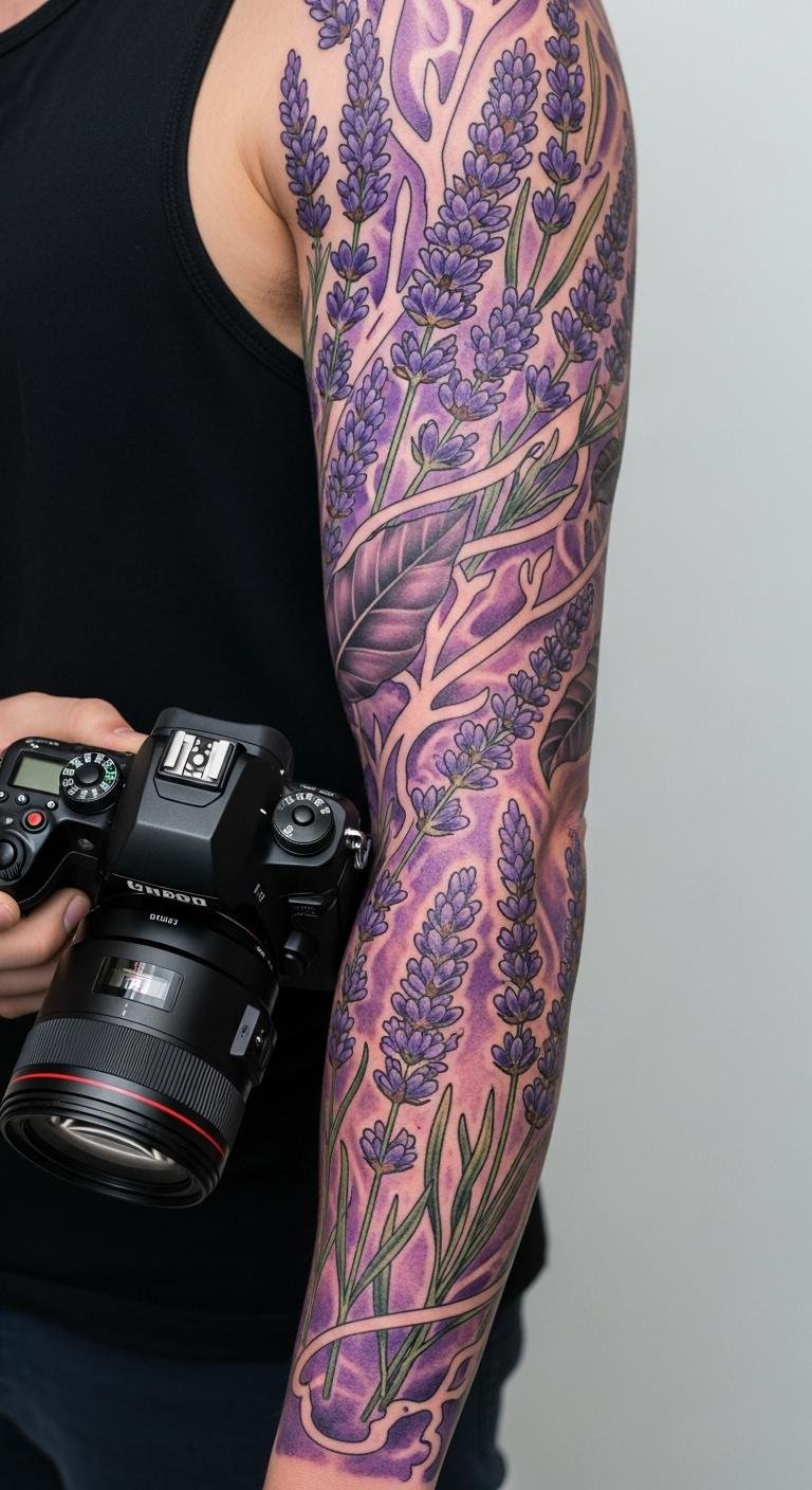 Neo-traditional brings bold outlines to lavender. Mix purple and green with thick lines. Put it on your arm for a strong statement. This style suits active lifestyles. Artists blend old-school vibes with modern colors. Prices range from $200 to $400. Shop around for deals at local fairs. Draw inspiration from vintage art books. They cost pennies at thrift stores. Customize with patterns that mean something to you. Keep the process fun and easy. Your tattoo stands out in any crowd. Use a mirror to plan the placement. It helps avoid regrets. After getting it, protect with sunscreen. This maintains the bold look. Test ideas with stickers first. They’re cheap and reusable.