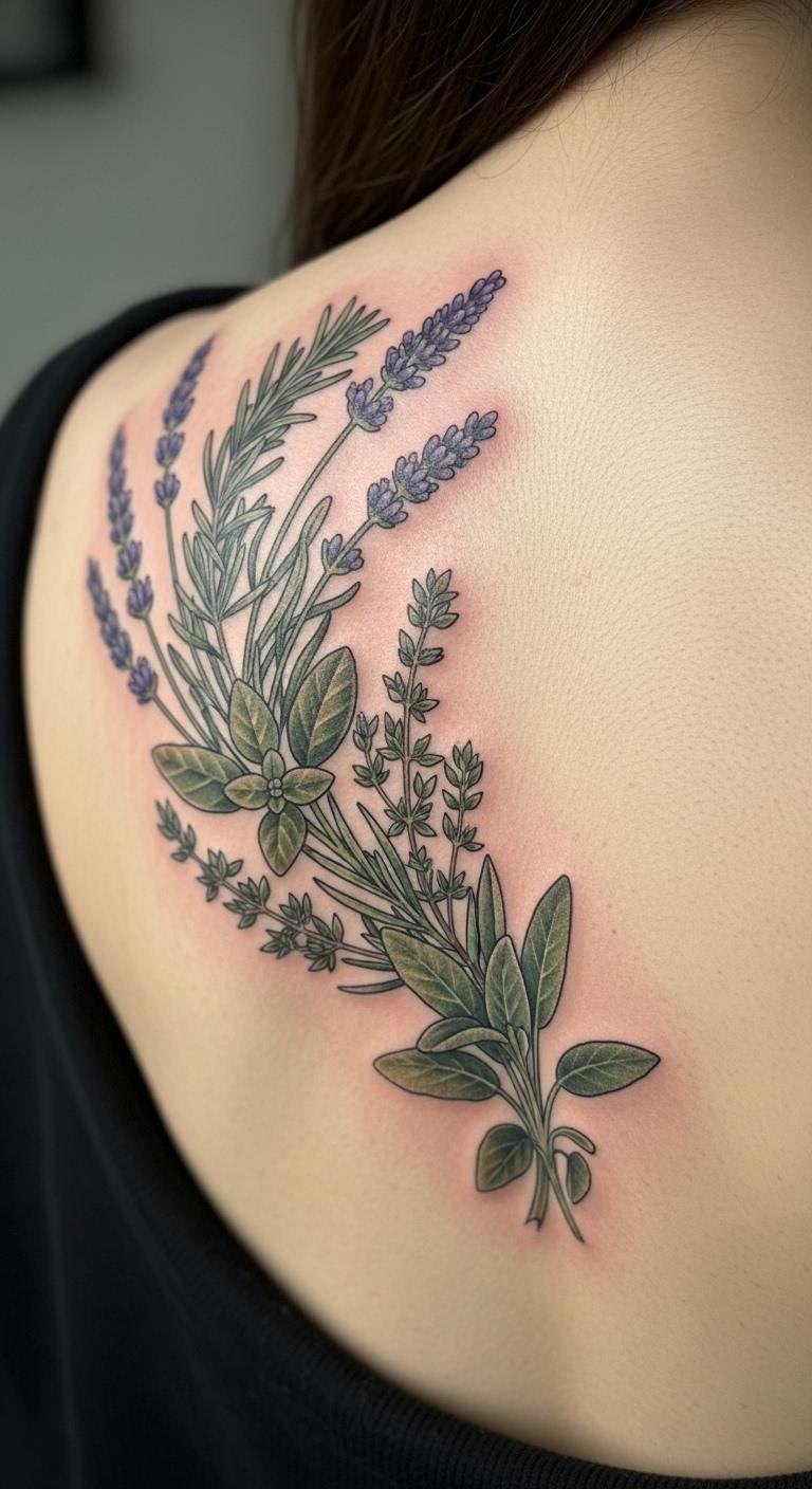 Lavender draws from nature for wellness vibes. Use it to represent healing moments. Back placements allow for larger spreads. Keep costs at $150. Gather leaves for real inspiration. Sketch outdoors for free ideas. Blend in elements like sun rays. Your tattoo promotes daily peace. Use natural oils for care.