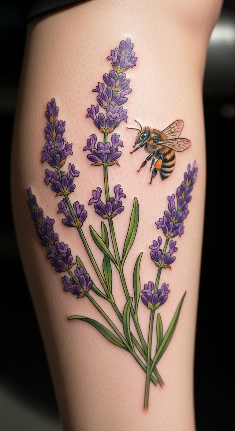 Pair lavender with a bee for added meaning. It represents hard work and growth. Place this on your leg for a flowing design. The bee adds a fun twist to the calm flowers. Artists charge $100 to $250 for this mix. Find budget options through online portfolios. Sketch bees on paper to get creative. It’s a free way to experiment. Make it personal with colors that match your vibe. Your tattoo becomes a symbol of progress. Apply it as a temporary decal first. Costs under $10. Keep the design balanced for better flow. Use mild lotions for upkeep. This keeps details sharp. Enjoy the process step by step.