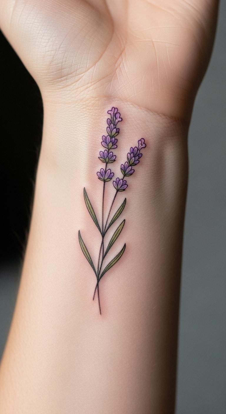 Wrists offer space for elongated lavender designs. They fit the curve perfectly. This placement makes it easy to see. Go for stems that wrap around. Costs around $80 to $200. Look for walk-in sessions to save. Trace templates from free online sources. Practice on your skin with safe pens. Personalize with a small addition, like a bud. Your tattoo enhances your daily routine. Protect it with sleeves if needed. Keep routines simple for longevity.