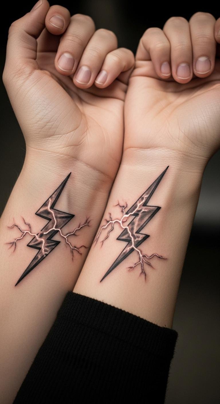 Think small and meaningful. A minimalist wrist lightning bolt keeps things understated yet powerful. It represents quick decisions and inner energy. You get a design that’s easy to hide or show off. Start with a sketch on paper using a pen. Trace a simple zigzag shape to match your style. For budget tips, visit a local artist who offers flash designs under $50. They use basic black ink for a clean look. Break it down: pick a spot like your wrist for daily visibility. Add a personal twist, like a tiny dot for a breakthrough moment. This DIY approach means drawing it first on your skin with henna as a test. It lasts a week and costs pennies. Go for sessions at walk-in shops to save money. A quick zap of ink becomes your confidence booster. Keep it real—choose waterproof bandages for aftercare from the dollar store. You’ll feel empowered every glance.