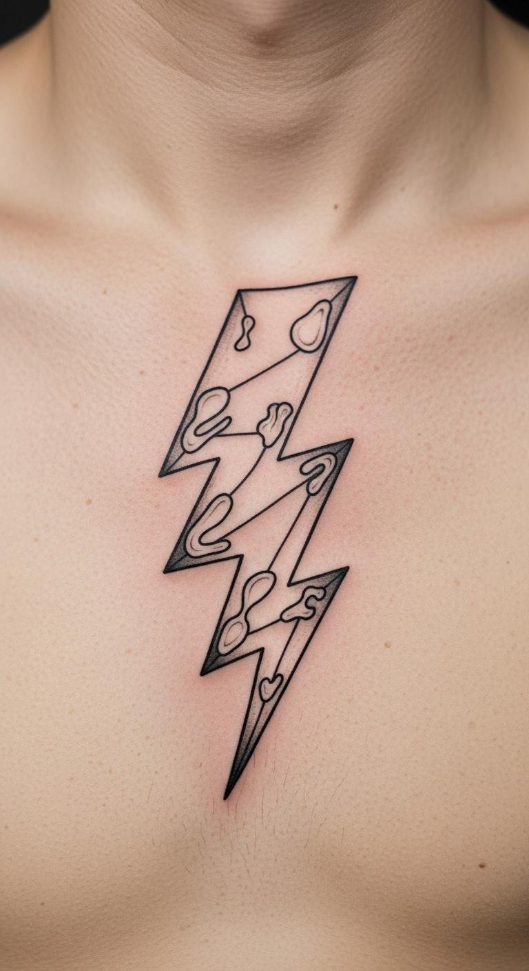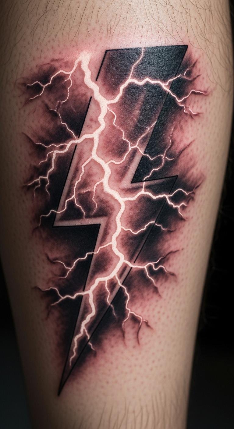Go modern with geometric shapes. This lightning bolt mixes angles and lines for a fresh take on power. It stands for resilience and clear vision. The design fits anywhere on your body. Draw it out at home with a ruler and marker. Create triangles around a central bolt for a unique pattern. Save cash by opting for a small session, around $60 at a community tattoo event. Use free online templates to customize before you go. Think practical: place it on your shoulder for easy cover-up at work. Add elements like dots for personal meaning. Test with temporary tattoos from craft stores—they’re under $5 and wash off easy. Focus on simple tools like graph paper for planning. Your tattoo turns into a daily reminder of momentum. Keep aftercare straightforward with drugstore lotion. It’s all about feeling strong without the fuss.