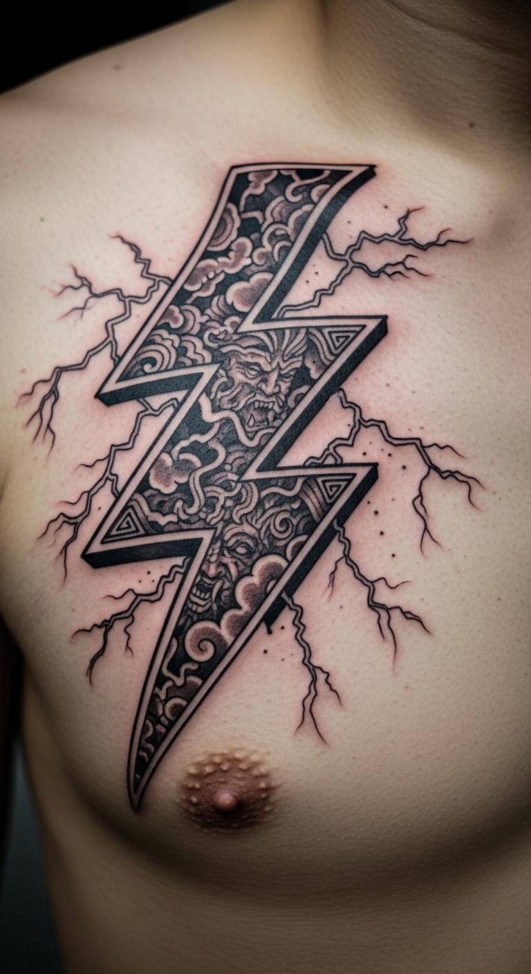 Mythological Thunderbolt Chest Ink