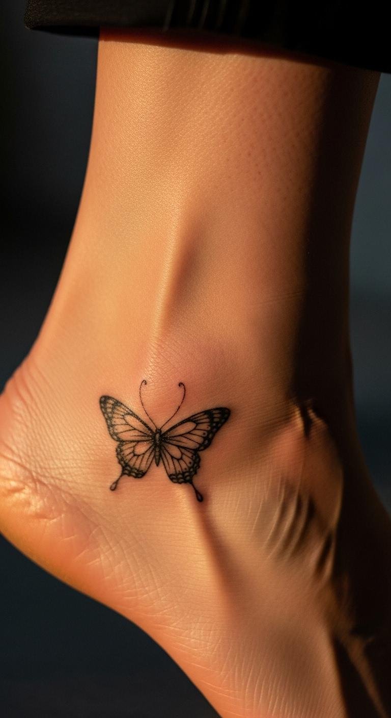 A butterfly on your ankle shows transformation in a fun way. It adds a touch of grace to your step. Choose a design with simple wings for subtlety. Expect to pay about $60 for this at a local shop. Draw it on with a pen before deciding—it’s free and helps visualize. Grab temporary stickers online for $5 to try on shoes. Opt for fine lines to match your style. This placement stays hidden in heels but shows in sandals. Butterfly tattoos suit active women and hold up well with lotion. Keep the size to 1 inch to avoid blurring over time. Add tiny dots around it for a personal twist. Practice with washable markers at home for ideas.