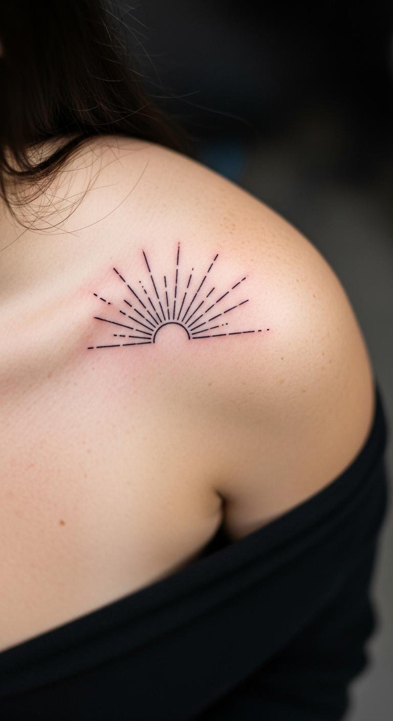 Sun rays on your shoulder light up your day with energy. They stand for warmth in a radiant design. Pick a burst of lines. This costs $60 at a shop. Draw rays on your shoulder with a marker—easy start. Sun temporary options are $4. Use straight lines for impact. This area covers with shirts but glows in tanks. Sun tattoos last with sun protection. Make it 2 inches max. Add a center dot for depth. Use stencils for home practice.