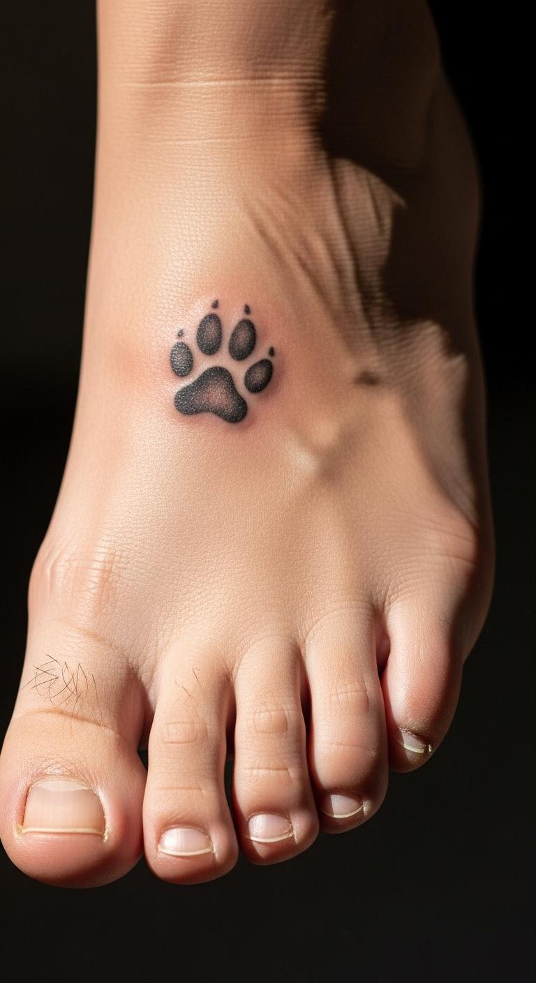 Paw prints on your foot add a pet-loving touch that’s personal. They mean loyalty in a fun way. Select one clear print. Budget $45 for this. Trace prints on your foot with ink—free first step. Paw stickers cost $2. Go for simple pads. This spot hides in shoes but shows barefoot. Paw tattoos stay intact with sock care. Keep under 1 inch. Include claws for realism. Stamp with DIY kits at home.