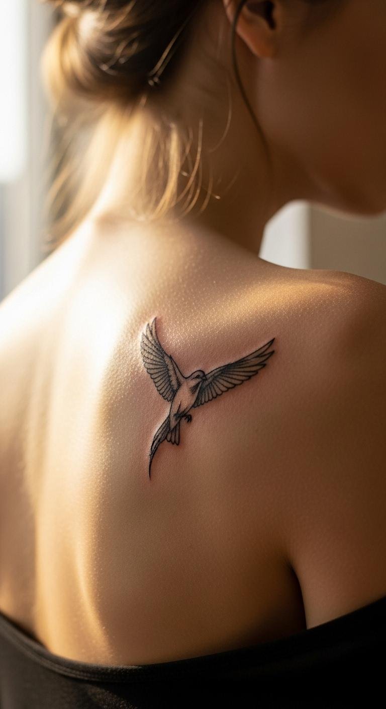 A bird in flight on your back symbolizes freedom quietly. It adds a sense of adventure. Pick a simple bird shape. Expect $65. Draw birds on your back with a friend—free fun. Bird stickers cost $4. Go for outline style. This spot stays covered but inspires you. Bird tattoos fade slowly with care. Make it 2 inches. Include wings spread wide. Use paper cutouts for planning.