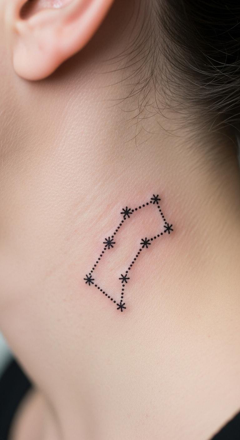 Dotwork constellations on your neck map your dreams subtly. They mean guidance in dots. Select a few stars. This costs $55. Plot dots on your neck with a pen—easy. Constellation stickers are $5. Use precise dots. This area hides under collars but shines up. Constellation tattoos hold with neck cream. Keep to 1 inch. Connect dots for patterns. Practice with dot markers.