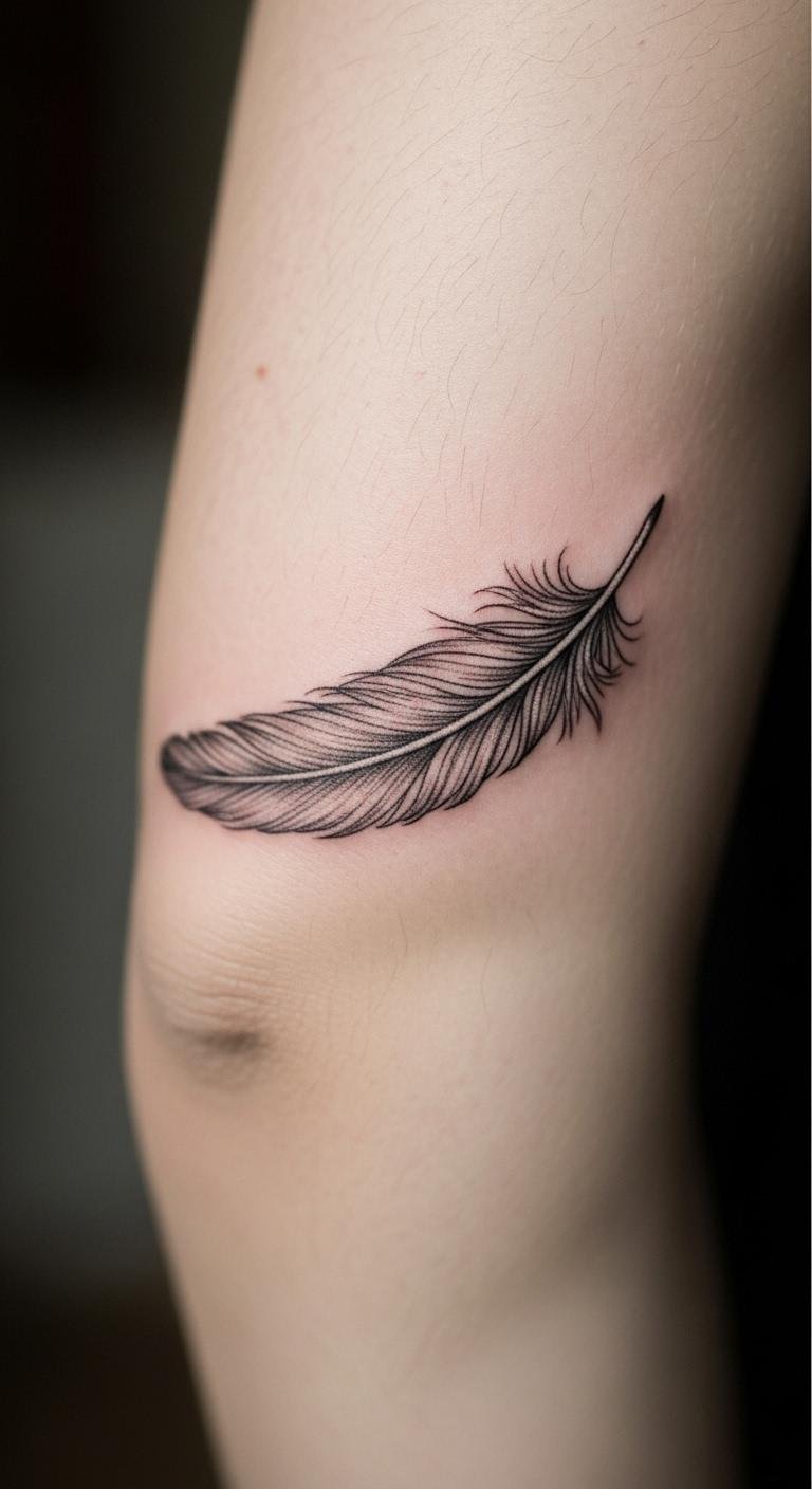 A feather on your elbow drifts with lightness. It represents freedom in a light design. Choose a single feather. Expect $45. Sketch feathers on your elbow—free. Feather stickers cost $4. Go for flowing lines. This spot bends but stays visible. Feather tattoos flex with care. Make it 1 inch. Add barbs for realism. Draw with soft brushes at home.