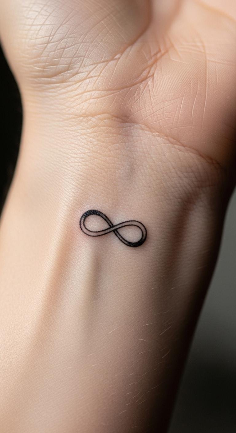 An infinity loop on your wrist loops endless possibilities. It means forever in a loop. Select a simple figure. This costs $40. Draw loops on your wrist—easy. Infinity stickers are $1. Use clean curves. This area watches time but hides under bands. Infinity tattoos circle back with touch-ups. Keep to 1 inch. Add twists for meaning. Use ribbon for practice.
