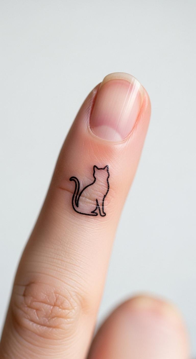 A cat silhouette on your finger brings playfulness to your hand. It represents companionship without much fuss. Go for a basic outline to keep it cute. This might cost $40 at an affordable artist. Sketch cats on your hand with a pencil first—it’s quick and cost-free. Use nail stickers that mimic tattoos for $2 a pack to test. Stick with black for longevity. This spot fits under gloves but adds charm to rings. Cat tattoos work on all skin types and need little care. Make it less than 1 inch for precision. Include a paw print next to it for fun. Experiment with phone apps that draw designs on photos.