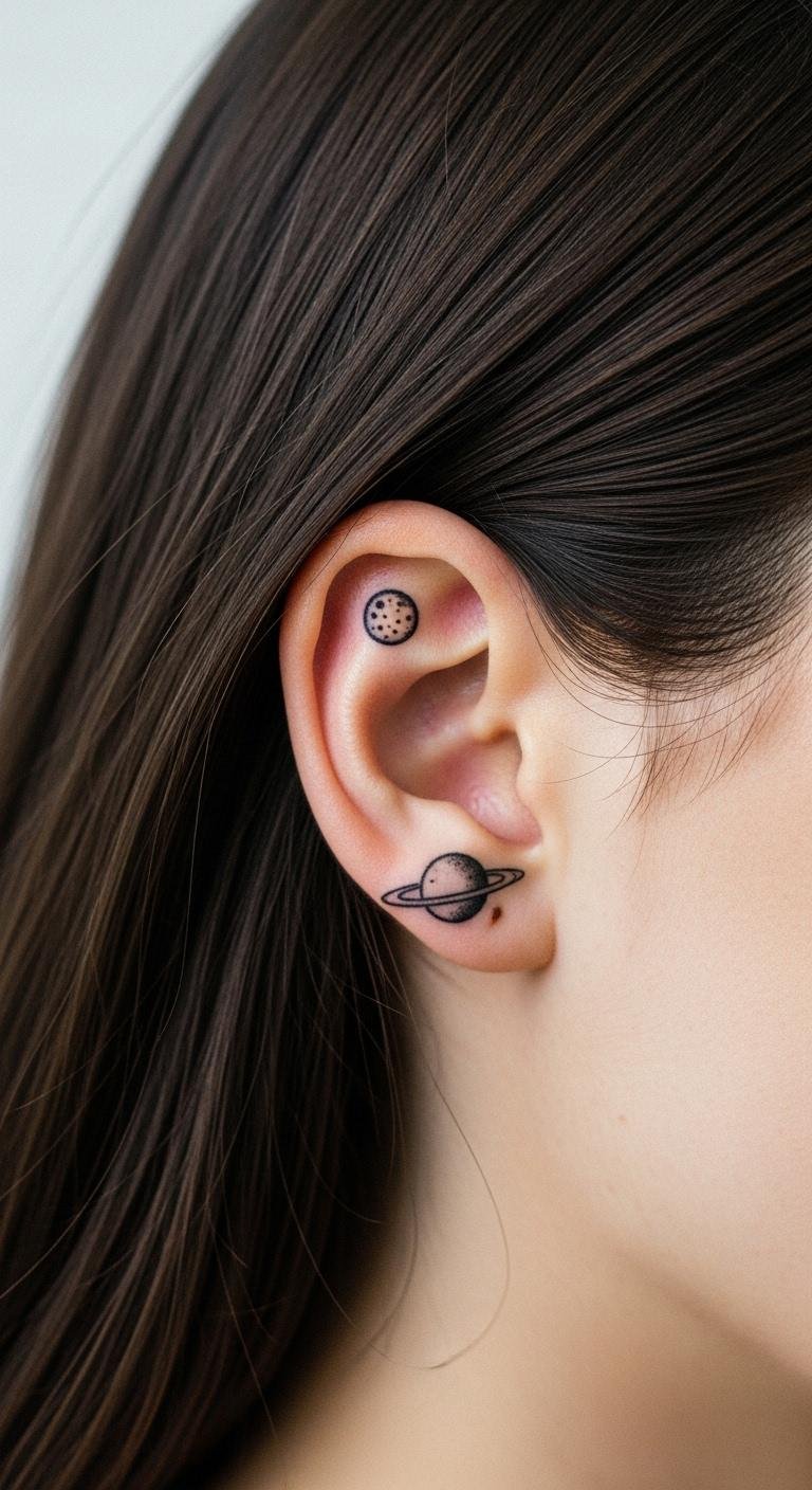 Celestial Saturn Design Behind Ear