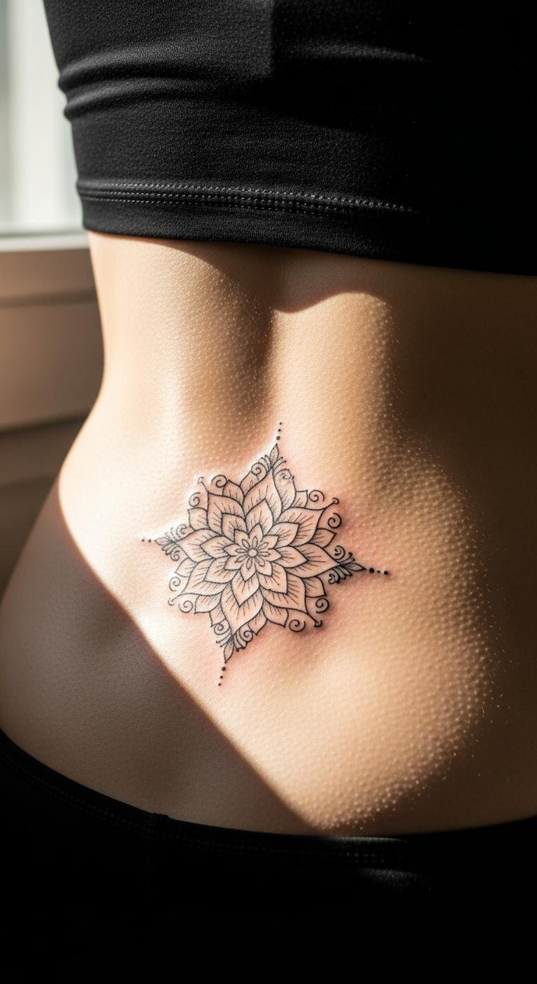 A floral mandala on your lower back brings strength and beauty together. It mixes flowers for a feminine touch. Pick simple petals in a circle shape. This runs about $70 at a nearby studio. Draw it on paper and hold up to a mirror—free and helpful. Get floral temporary tattoos for $3 to wear under clothes. Go for black outlines to save on color. This spot hides under most outfits but empowers you privately. Mandala tattoos last with regular moisturizing. Keep under 3 inches for detail. Add geometric lines inside for balance. Practice with string art at home for ideas.